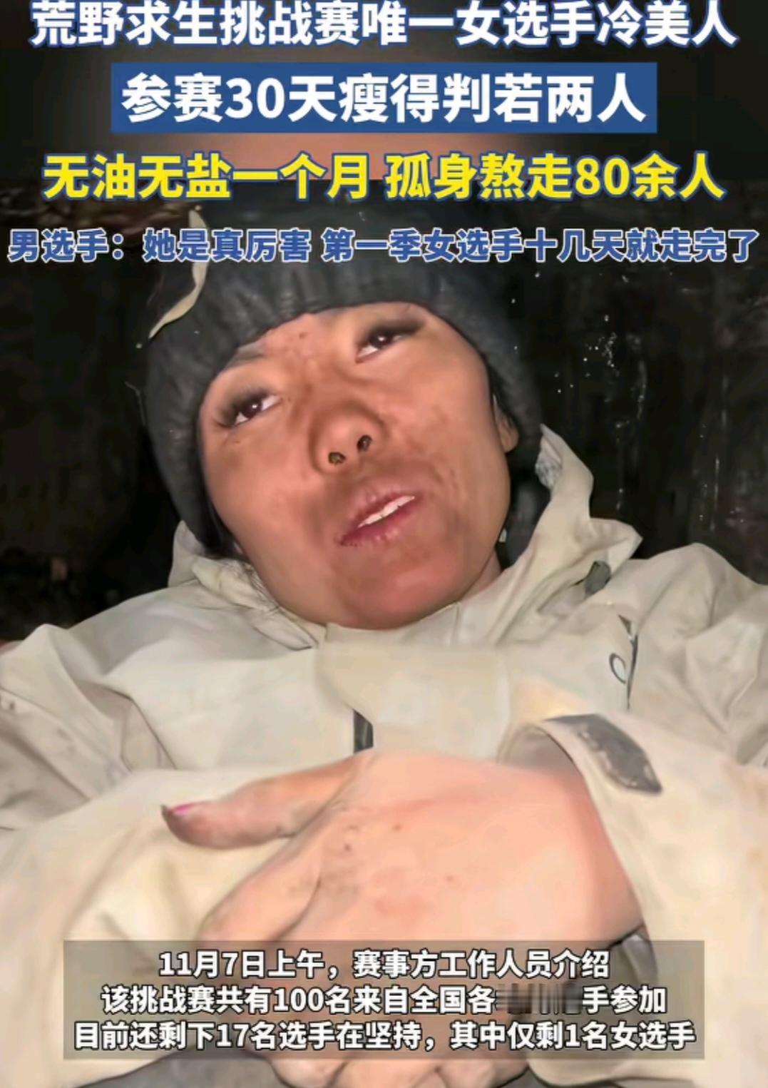 湖南张家界一场荒野大求生比赛引发了广大网友的关注,比赛过去30天,已经只剩下17人,有一名女选手来自云南。她与刚进入比赛时,简直就是判若两人,她也表示来了这场比赛,想不受都难。为了拿到冠军,每个选手在山里摘野果,手指和嘴唇都破了。对于很多人来说,大家只看到了比赛之后的那个巨额的奖金,但是又有谁能真正的在比赛里获胜,这需要强硬的身体素质和心理素质。还有求生技能缺一不可。