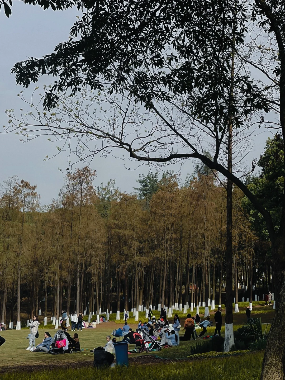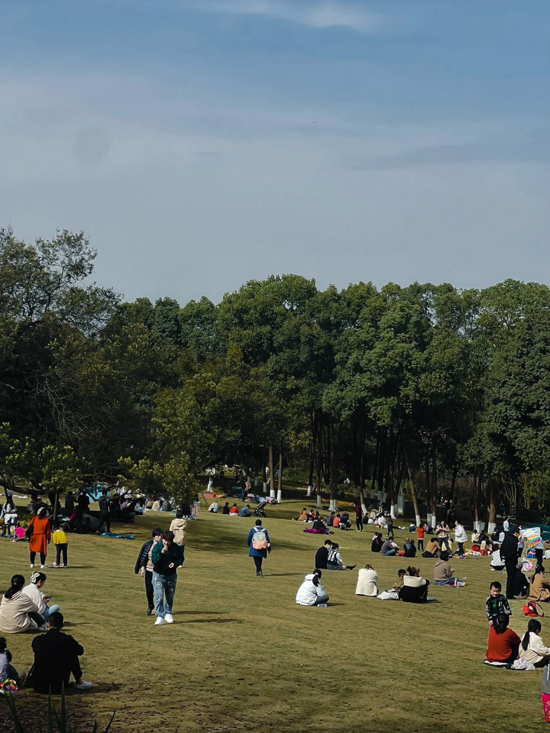 很多人在这里露营野餐,孩子们在草坪上放风筝,吹泡泡,走累了不妨在这里坐着晒晒太阳,这个地方拍照也超级出片,还有很多来拍婚纱照的