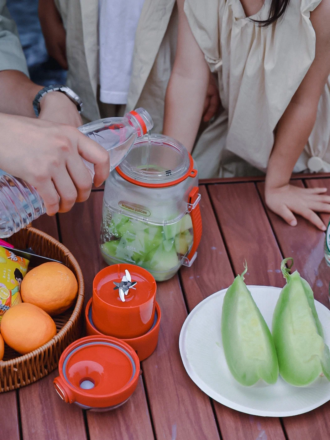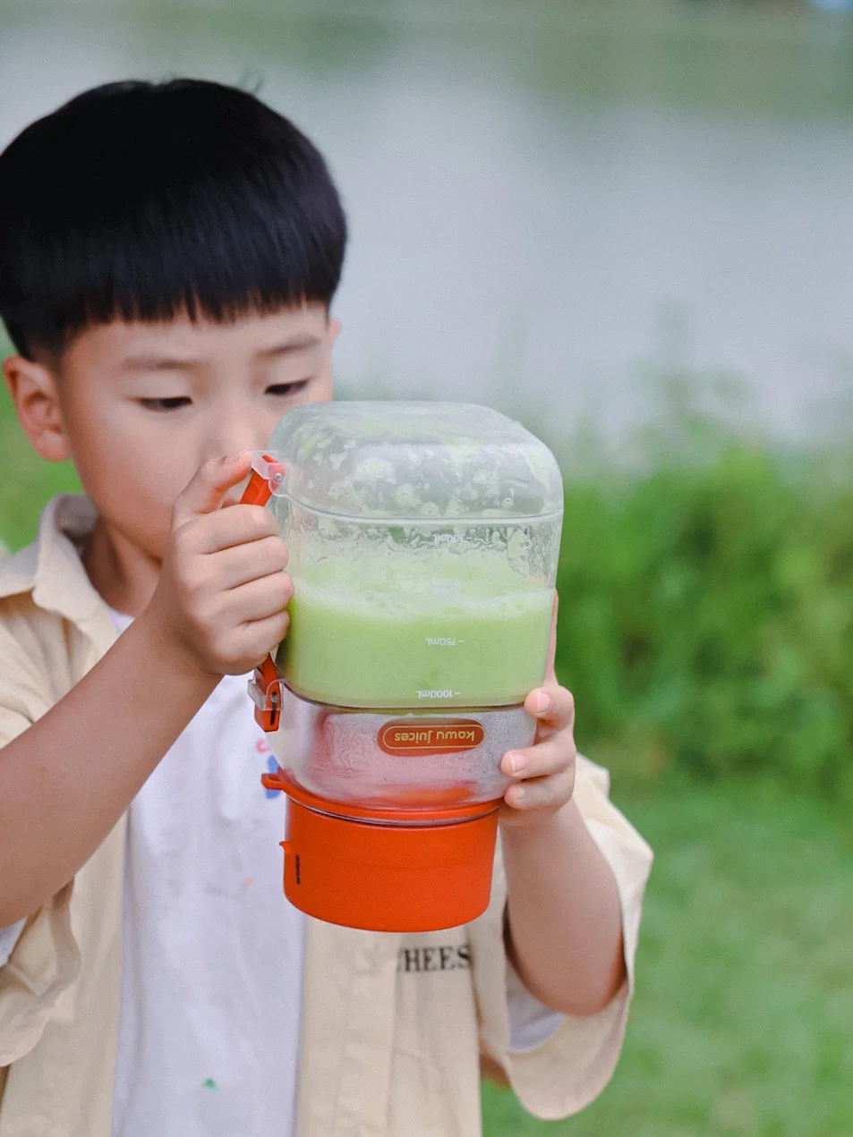 我家两个孩子都特别喜欢喝果汁,平时在家也经常榨橙汁,葡萄汁给他们喝,但由于我们经常都外出,外面的果汁不新鲜也很贵,所以爸爸给买了一个卡屋榨汁杯,吨吨桶的造型特可爱,小小的一个还可以随身携带,这下不管去哪里两小只都可以喝到新鲜的果汁啦,1L的大容量也刚好够他们两个喝,换个直饮盖就可以直接变成水杯,背上背带出行简直不要太方便啦