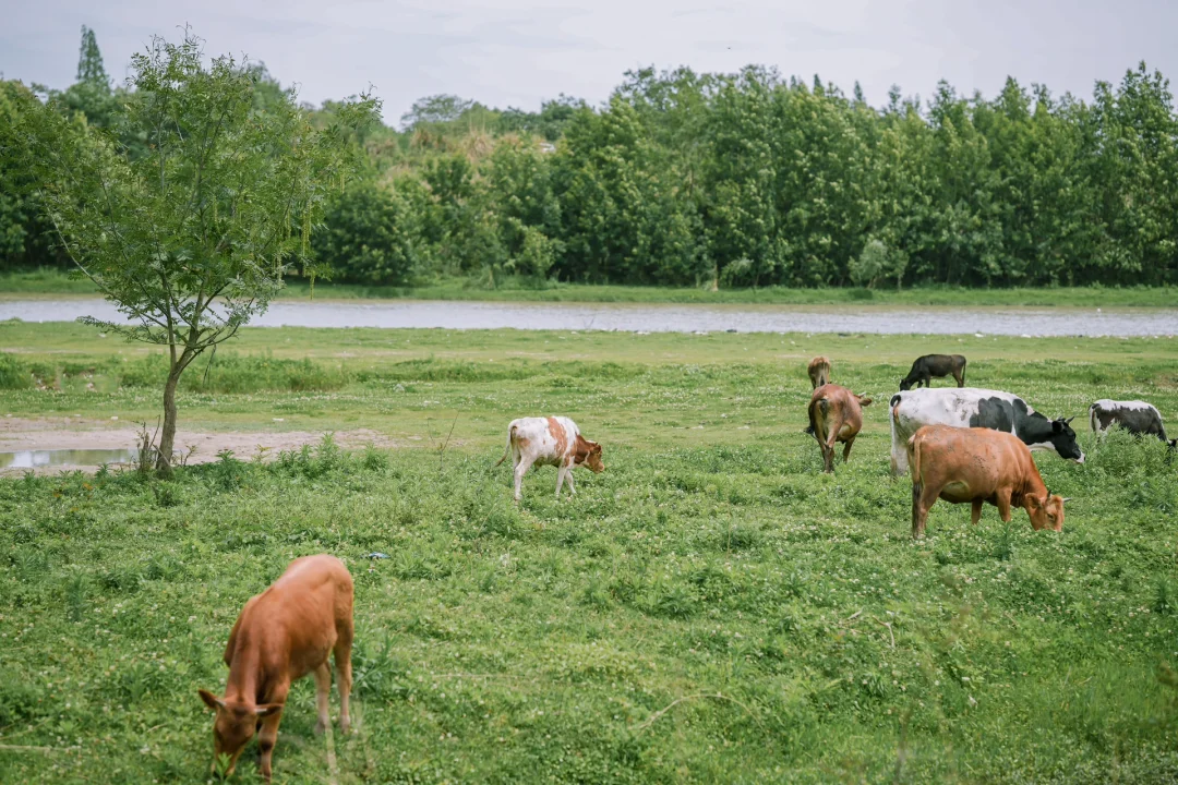✅临靠河边,牛羊成群