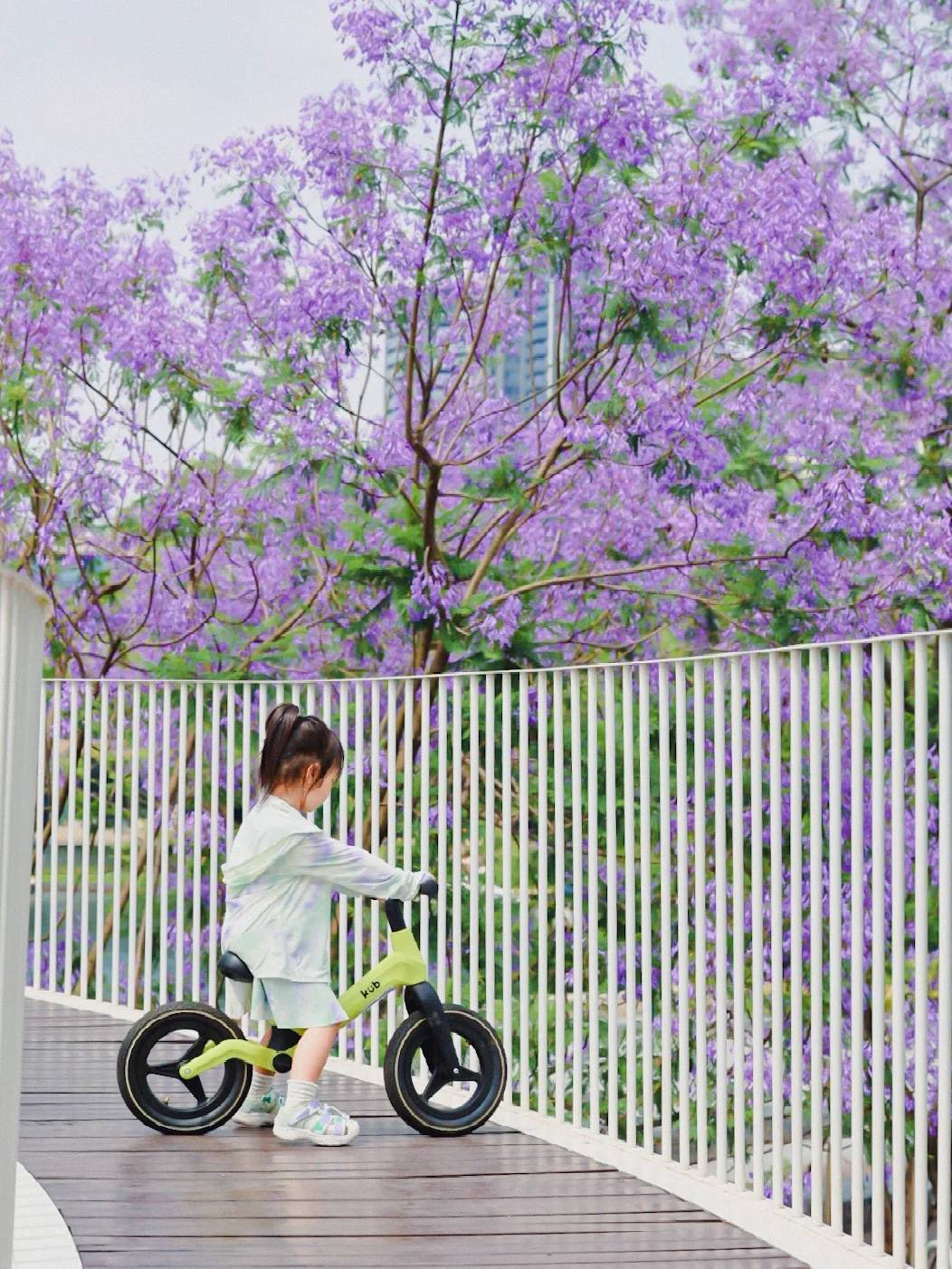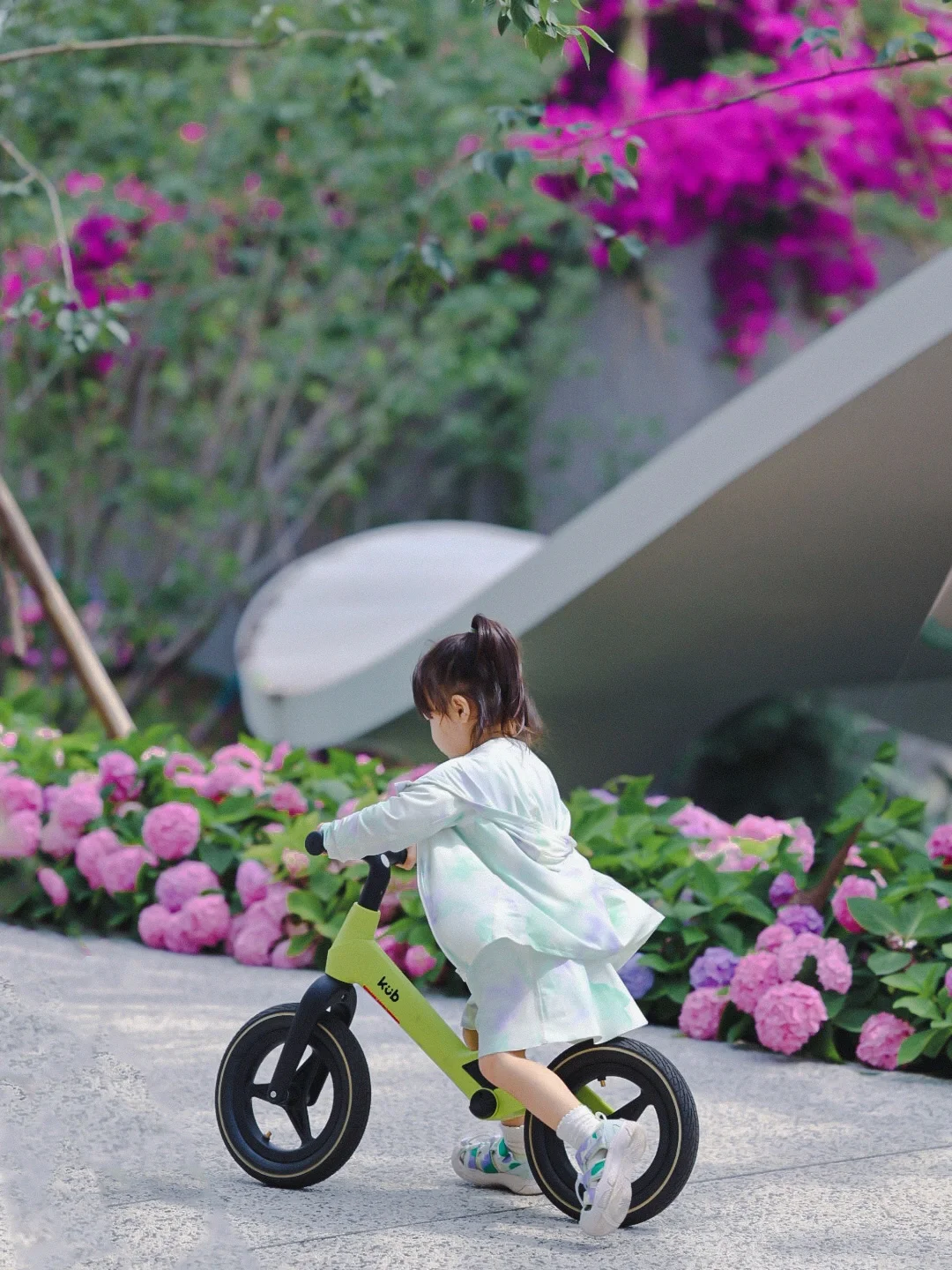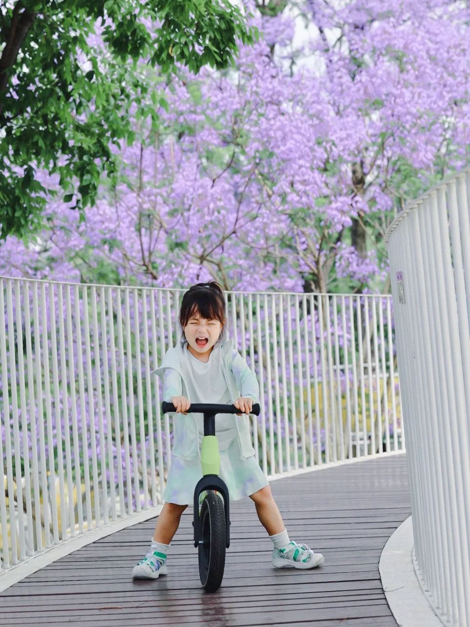 ✅整个园区不仅景色美,而且人不多路也宽敞,很适合带孩子骑行。这次出门给豆芽带的是爸爸提前给准备的六一礼物,这辆车子真是送到豆芽心里啦,她超喜欢,运动衣一穿,车子一骑,炒鸡酷!