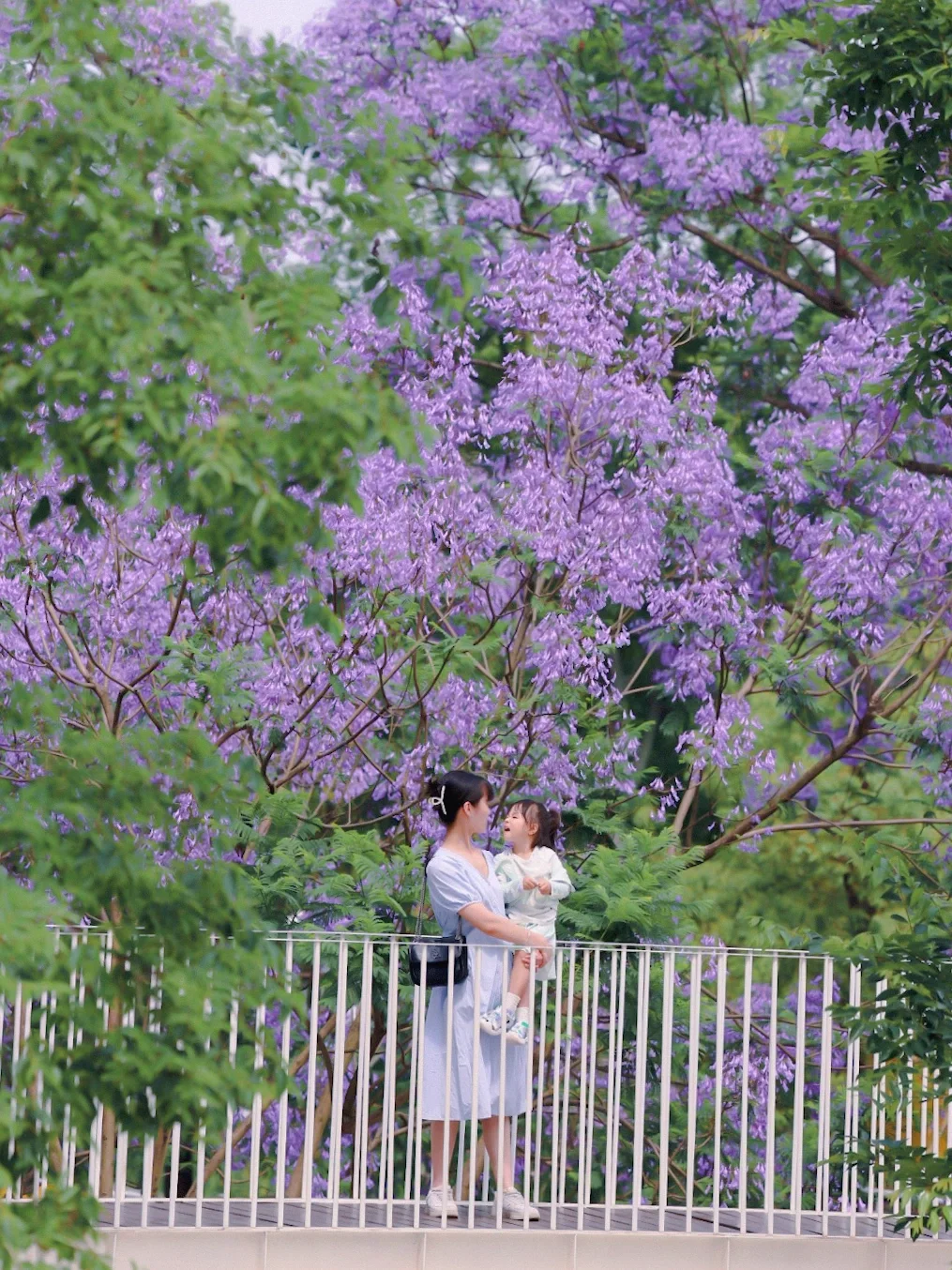 嗨,我是喜欢带娃出游的豆芽麻麻,一个地方能让我们去两次,那一定是特别漂亮或者特别好玩,上次来这里发现了绝美的绣球花海,这次过来又发现了开满整个乐园的蓝花楹,不得不感叹,五月的成都真的太浪漫了