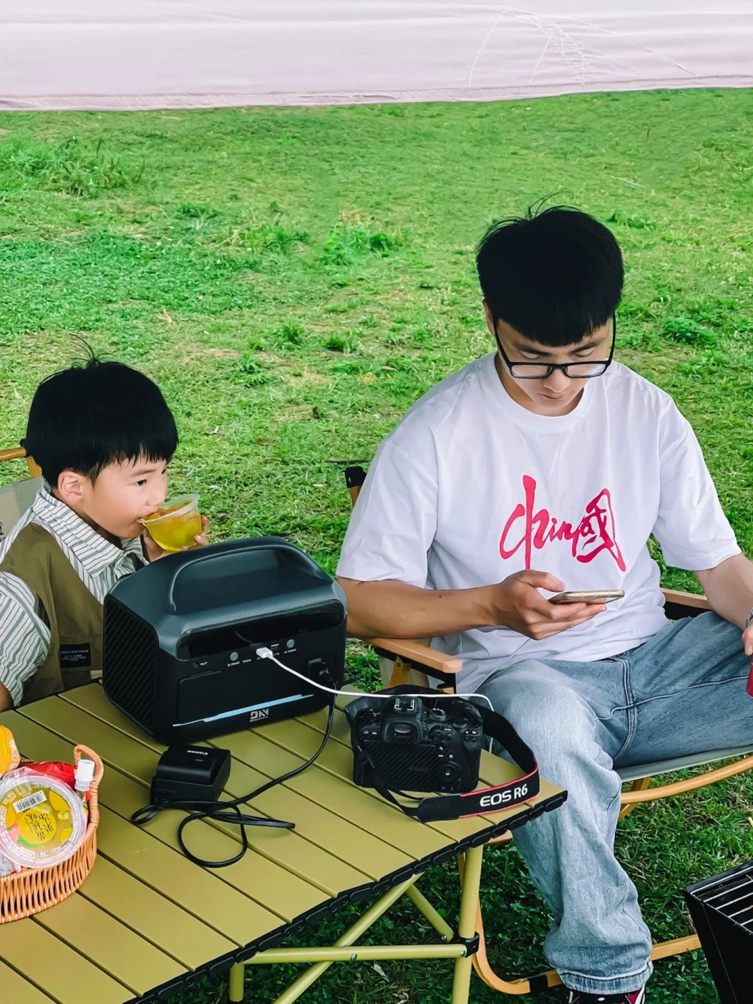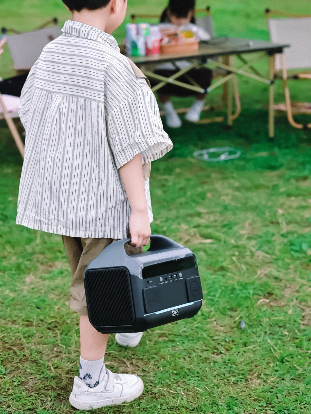 而且可以同时给相机、手机、音响提供电源,后面夏天还可以制冰机,想想就很美好,我五岁的儿子也能一只手轻松提起,以后露营也可以安排小男子汉干活啦~