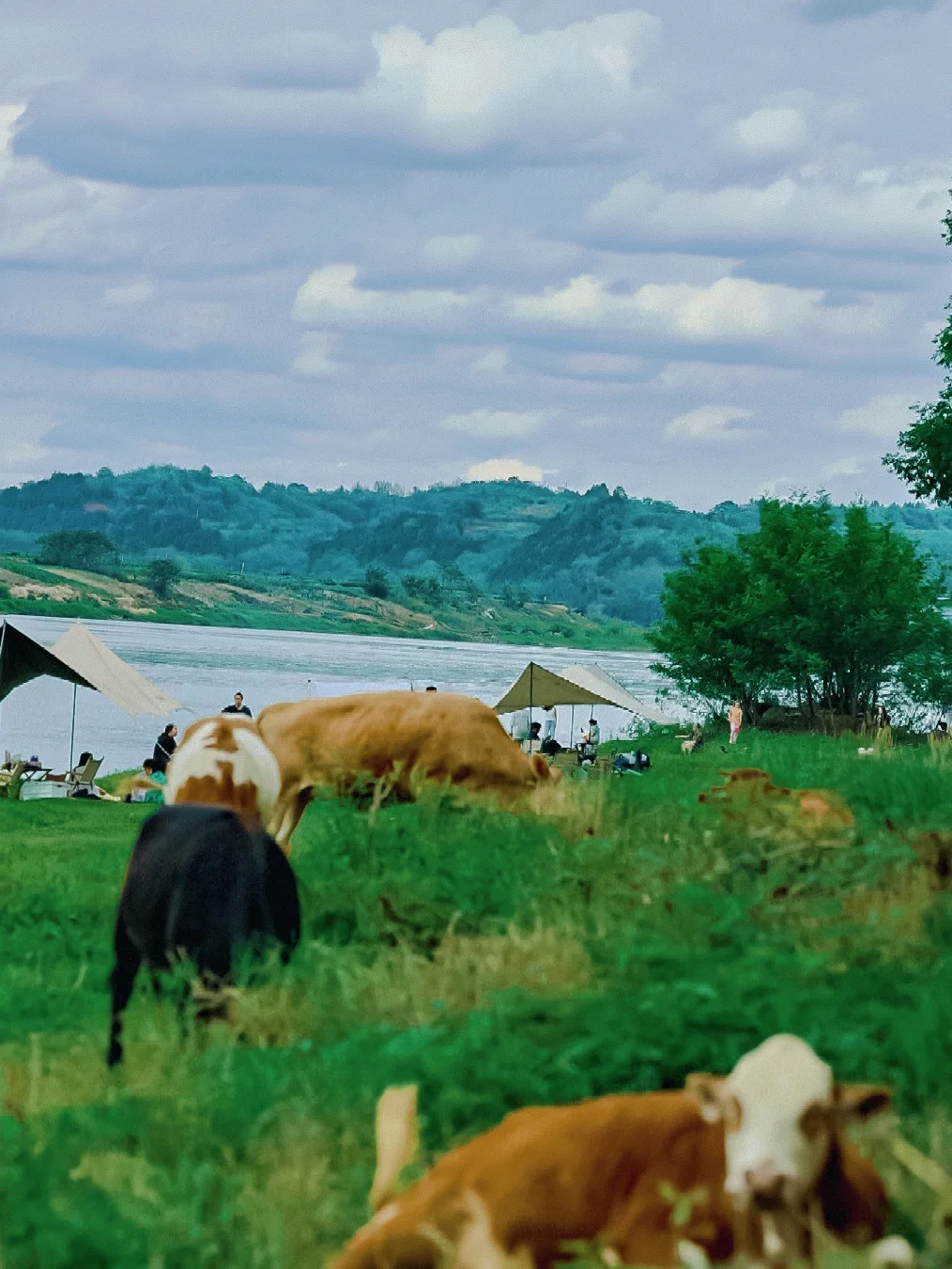 ✔️最好带天幕防晒,挨着河边基本没有树木可以遮挡