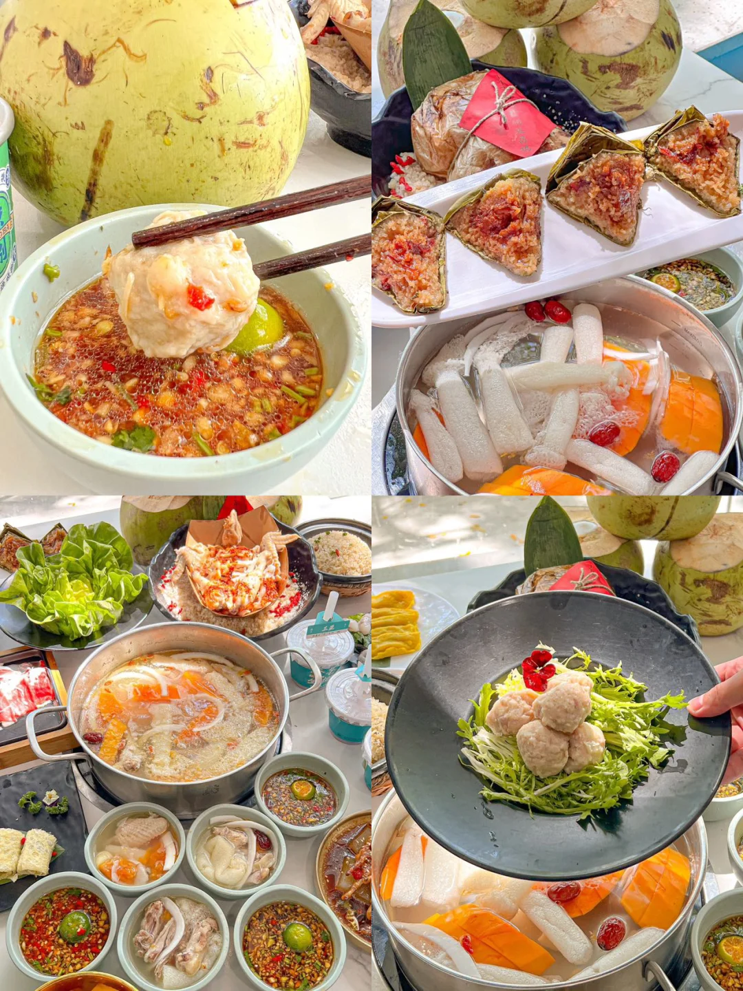 海棠湾住的酒店所以都在外面吃,附近有环球美食城、海棠食悦。吃了椰子鸡、糟粕醋、海鲜、私房菜等。