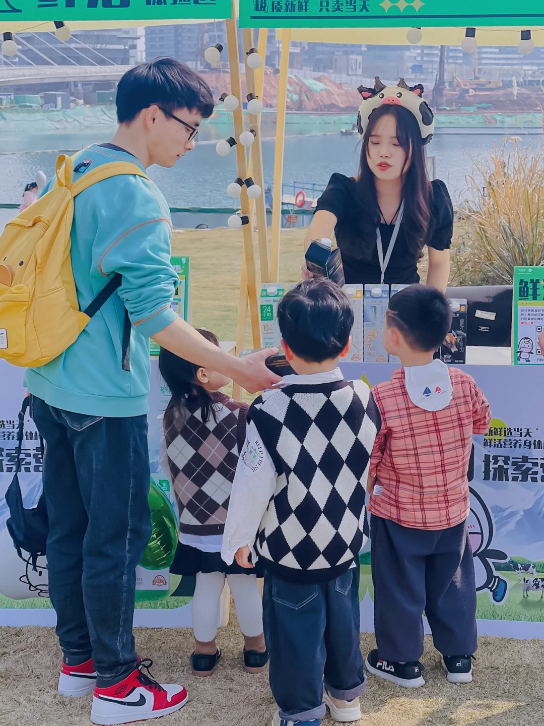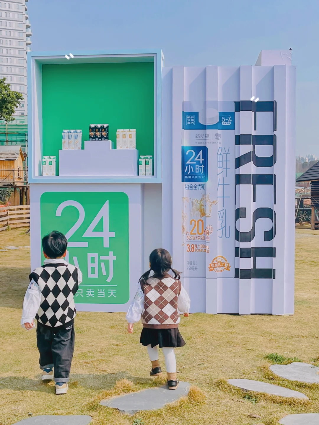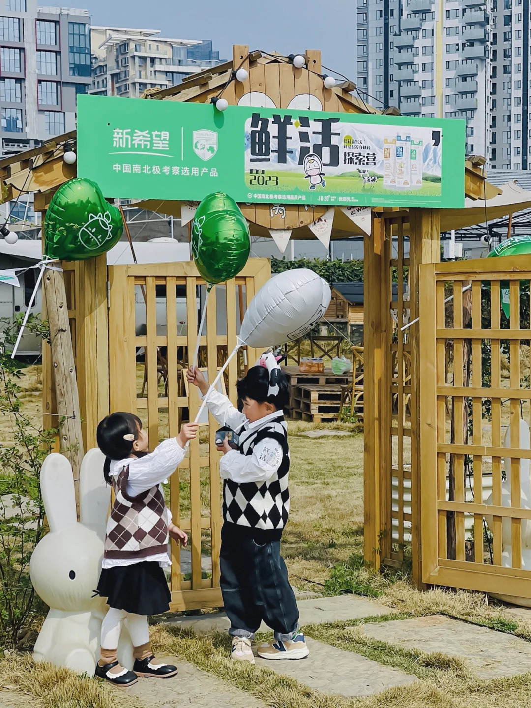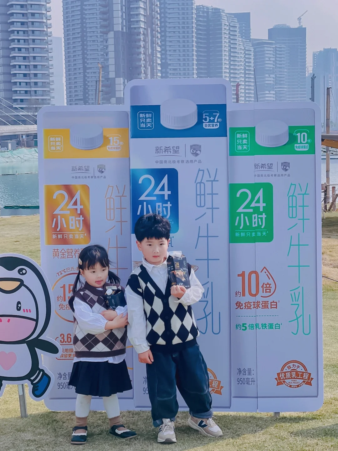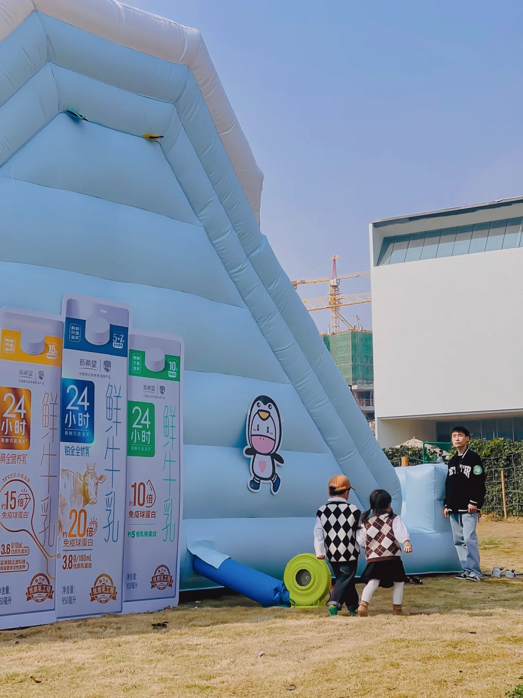 🎁完成这些挑战后,就可以去领取礼品啦,俩孩子一人领取了一个白色的奶牛包,气球,还领取了两大瓶新希望24小时限定娟姗乳,下午在这里玩的时候孩子们就喝了一大瓶,一直告诉我这种太好喝了,叫我以后多买一点,因为完全没有腥味喝完甚至还有一点回甜,所以我决定以后孩子的早餐奶就选择它啦