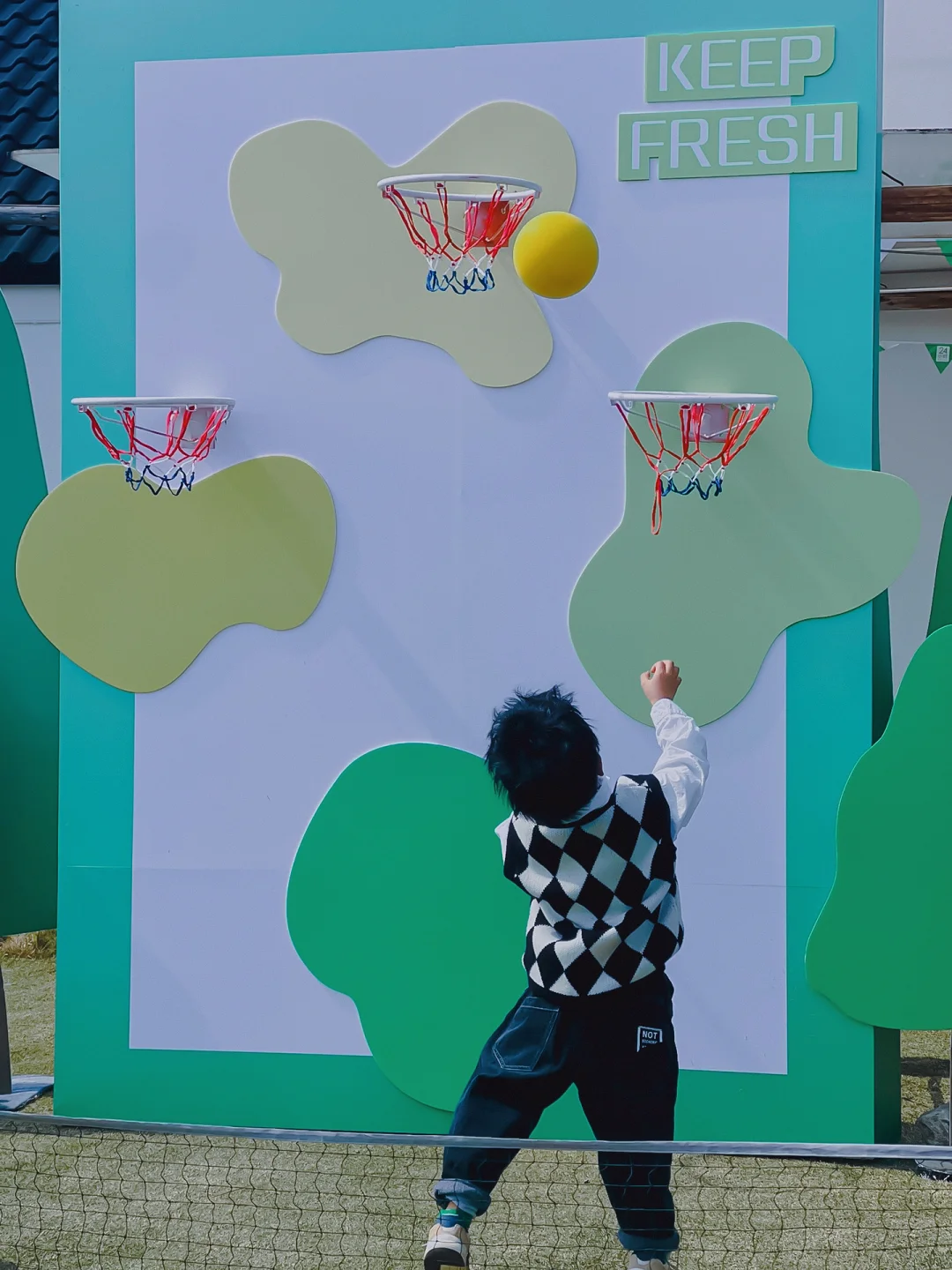 这次我们运气比较好,过来的时候刚好遇到新希望乳业在这里做活动,得知参加他们的几个挑战就可以领取礼品,所以两个小朋友非常的积极,挑战的所有项目基本也都是适合孩子的