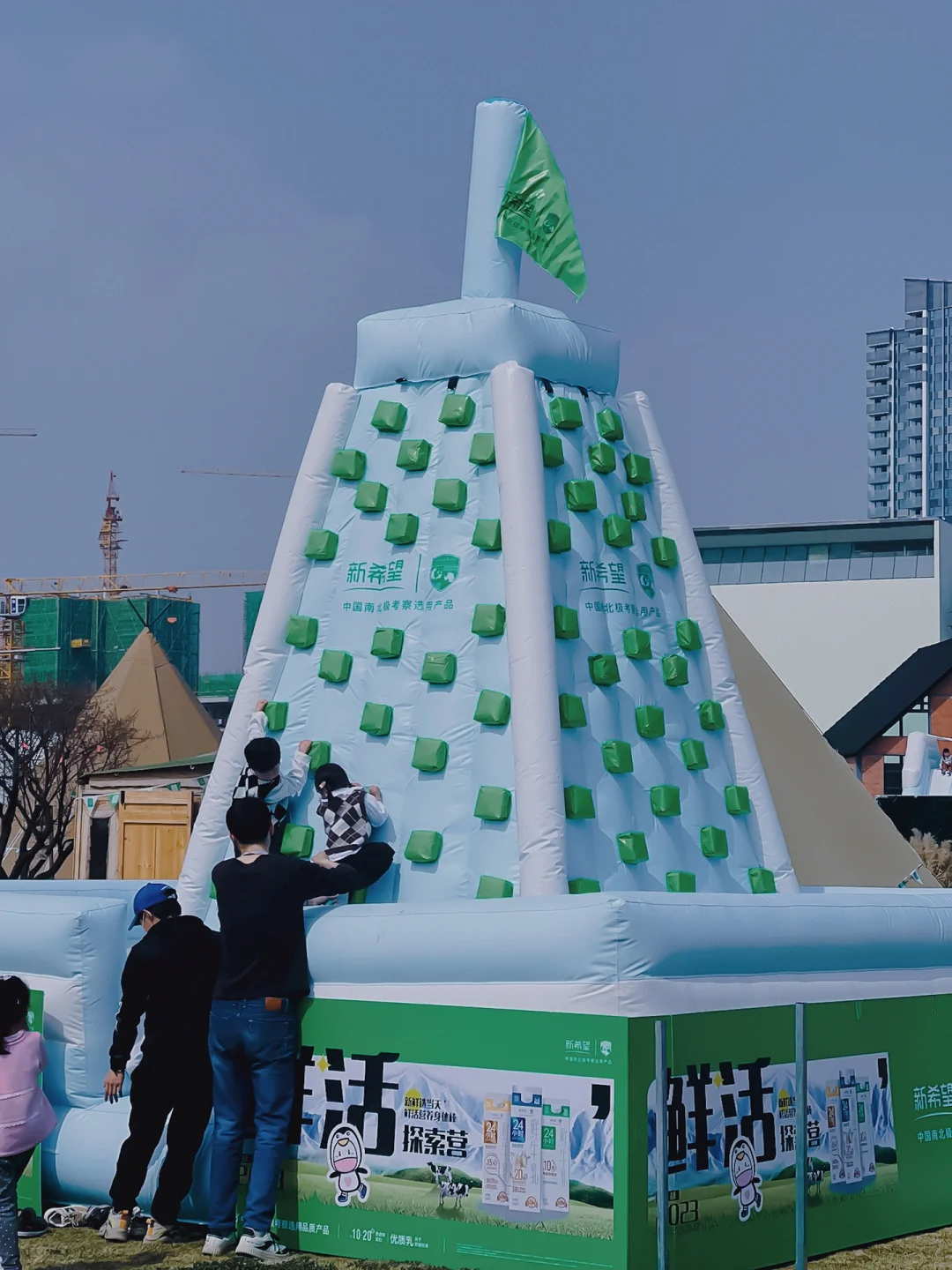 这里是一个非常高的充气攀岩,十分锻炼孩子的胆量