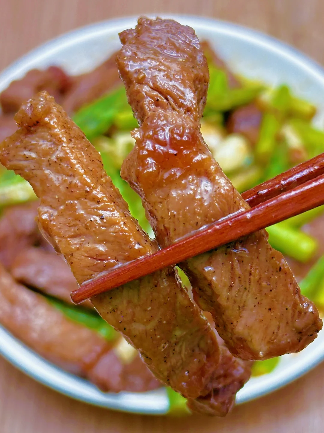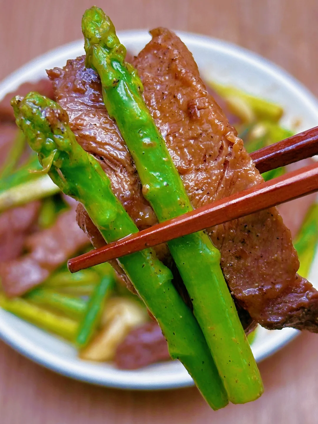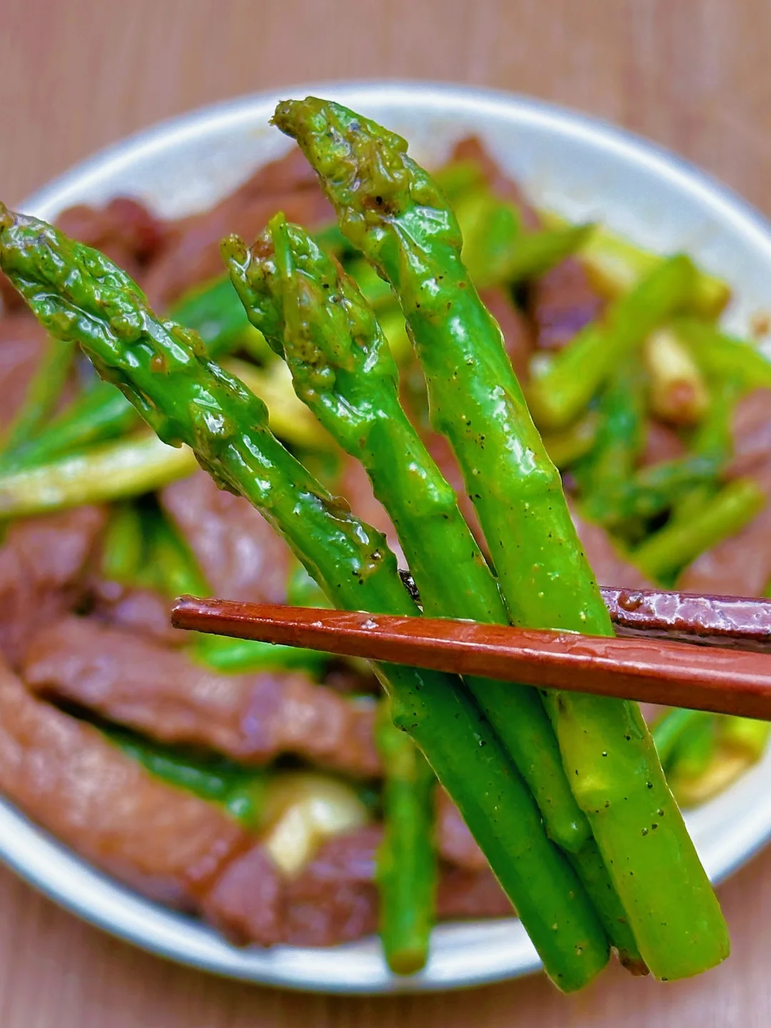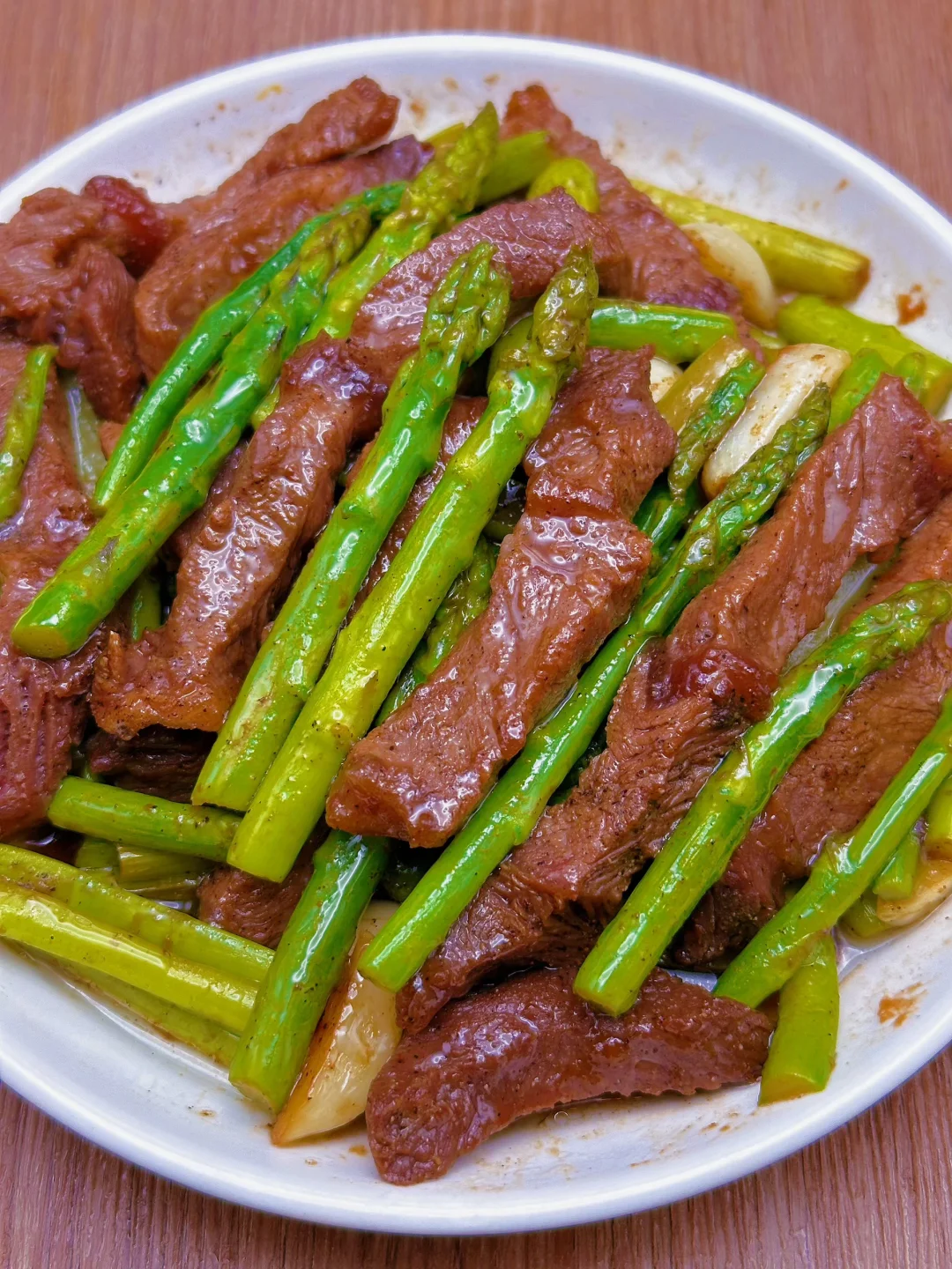 姐妹们今天分享的这道低卡高蛋白芦笋炒牛排~真的是鲜嫩美味,而且芦笋吃起来脆脆的,腌制过的牛排更加入味,真的非常适合减脂期姐妹,做法简单不翻车~ 🥗食材:我用的牛排(也可以用牛肉)芦笋 🥘做法:如图所示~ ✅腌制:牛排切成条➕一勺料酒➕一勺生抽➕一勺橄榄油➕一勺淀粉➕少许蚝油➕黑胡椒腌制15分钟 1️⃣芦笋焯水2分钟捞出备用 2️⃣少油放入牛排煎熟(变色就好)盛出备用 3️⃣放入蒜头爆香,倒入牛排芦笋,加入生抽少许黑胡椒翻炒均匀即可