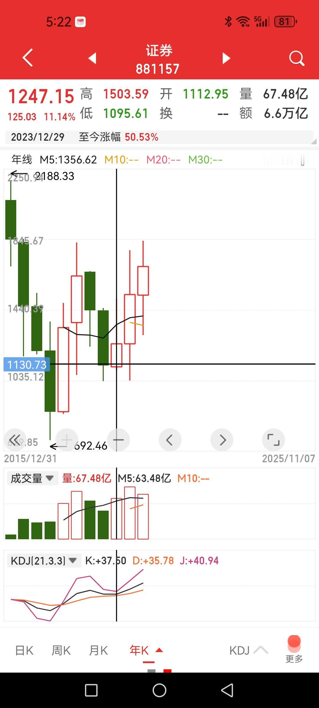 证券板块指数与上证指数五个年头对比的结果证明证券板块的确落后了。 1、2023