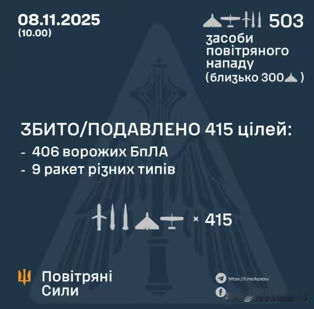 当地时间7日夜间,乌克兰中东部地区遭俄罗斯大规模导弹与无人机联合袭击。在此次联合空袭打击中,乌克兰可谓是损失惨重。 据乌克兰方面统计,俄军在此次大规模无人机导弹联合袭击中,总计发射了45枚导弹,其中包括25枚“伊斯坎德尔-M”弹道导弹、7枚“匕首”高超声速导弹、13枚“伊斯坎德尔-K”巡航导弹和3枚“口径”巡航导弹。 另外包括458架各种型号无人机。 拦截情况: 乌克兰空军表示,在此次袭击中,拦截了大部分导弹和无人机袭击。其中包括,9枚导弹,406架无人机被击落拦截。但没有说明具体拦截了哪些型号导弹。 根据外媒报道,此次俄军主要打击目标包括: •波尔塔瓦州别尔斯克油气综合加工厂(坐标50.10915, 34.57816)遭2枚"伊斯坎德尔-M"袭击 •切尔尼戈夫州4号油气开采车间(坐标50.8025, 33.1349)遭4枚"伊斯坎德尔-M"袭击 •哈尔科夫州UKPG天然气处理厂(坐标49.85486, 35.97214)遭3枚"伊斯坎德尔-M"袭击 •哈尔科夫州TEC-5热电厂(坐标49.97057, 36.11147)遭3枚"伊斯坎德尔-M"袭击 •哈尔科夫州斯洛博占斯克发电厂(坐标49.58516, 36.52387)遭2枚"伊斯坎德尔-M"袭击 •第聂伯罗彼得罗夫斯克州普里德尼普罗夫斯卡热电厂(坐标48.40496, 35.11253)遭6枚"伊斯坎德尔-M"袭击 •第聂伯罗彼得罗夫斯克州巴甫洛格达化工厂(坐标48.56746, 35.82358)遭2枚"伊斯坎德尔-M"袭击 •波尔塔瓦州科捷利瓦附近未知目标(疑似燃气设施)遭5枚"匕首"和9枚"伊斯坎德尔-K"袭击 •基辅州布恰附近未知目标遭3枚"口径"、2枚"匕首"和2枚"伊斯坎德尔-K"袭击 •基辅州奥布霍夫附近未知目标遭2枚"伊斯坎德尔-K"袭击 •基辅州法斯蒂夫附近未知目标遭3枚"匕首"袭击 额外打击区域(仅遭"天竺葵-2"无人机袭击): 基辅州基辅市、鲍里斯波尔、克列缅丘格、斯维特洛多夫斯克、波尔塔瓦市周边、卢布内地区、格列宾卡地区、苏梅市、哈尔科夫州兹拉托波尔地区、巴拉克列亚地区、扎波罗热市、尼古拉耶夫市、切尔尼戈夫州普里卢基地区、顿涅茨克州尼古拉耶夫卡地区 可以说,乌克兰在此次俄罗斯大规模打击中,损失惨重。能源基础设施在近期遭到袭击中受损还没有恢复,再次遭到打击,可谓是“雪上加霜”