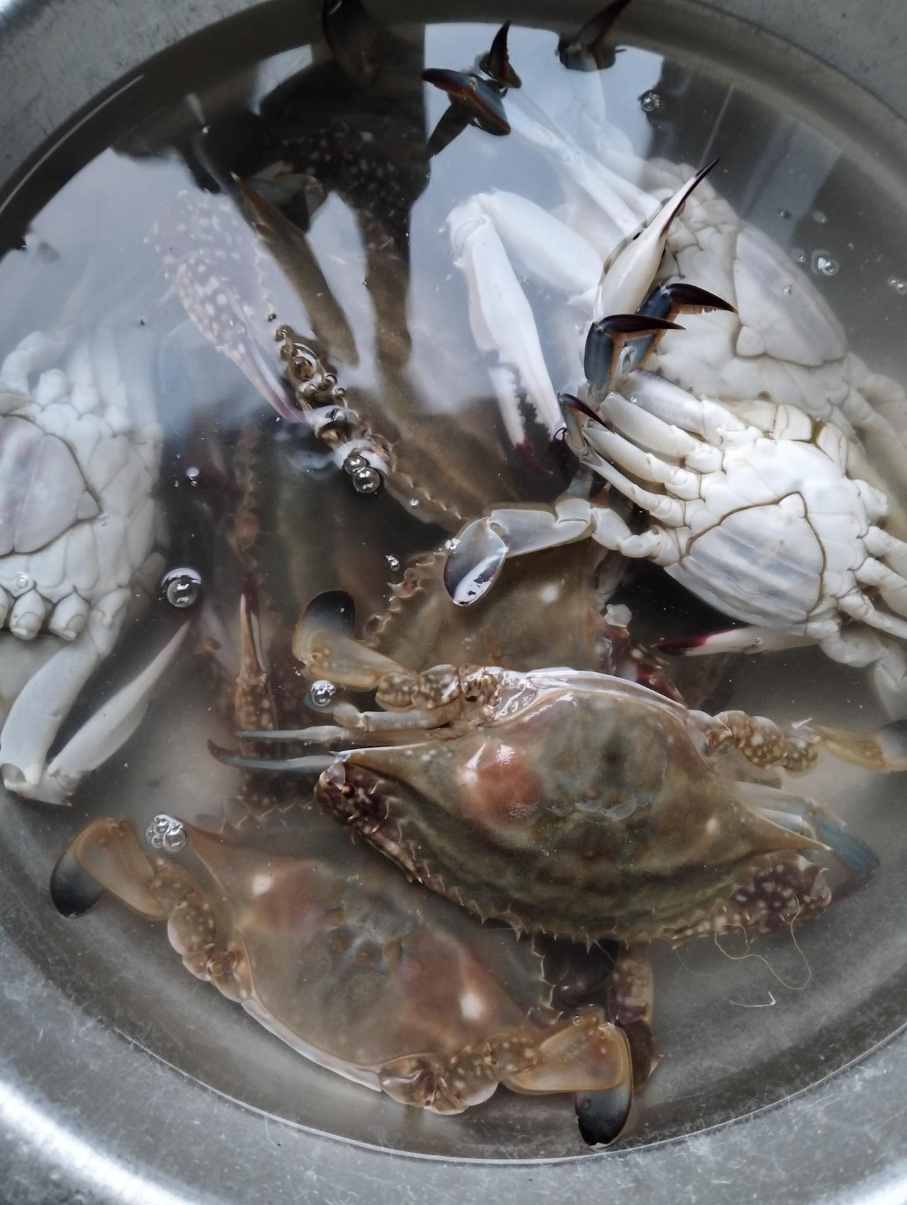 我吃不长鳞的鱼,吃葱蒜韭菜等食物都胃胀气,越晚上越重,有时下半夜都睡不着。就是吃螃蟹时,胃它不胀气了,这一阵子只得拿螃蟹当晚饭,这下子好了晚上睡觉不错。 今天下午去西口买了5斤半螃蟹,没有想到这个摊上螃蟹没有绑皮套,让一个螃蟹给我右手食指和中指上,各夹破了两个小口,挤出来血。我去年让螃蟹给我食指尖夹了一个口,疼了3个月。这个摊主告诉我,用醋和食碱兑一起,泡泡伤口消了毒就好了。 不知道真假,明天见分晓。