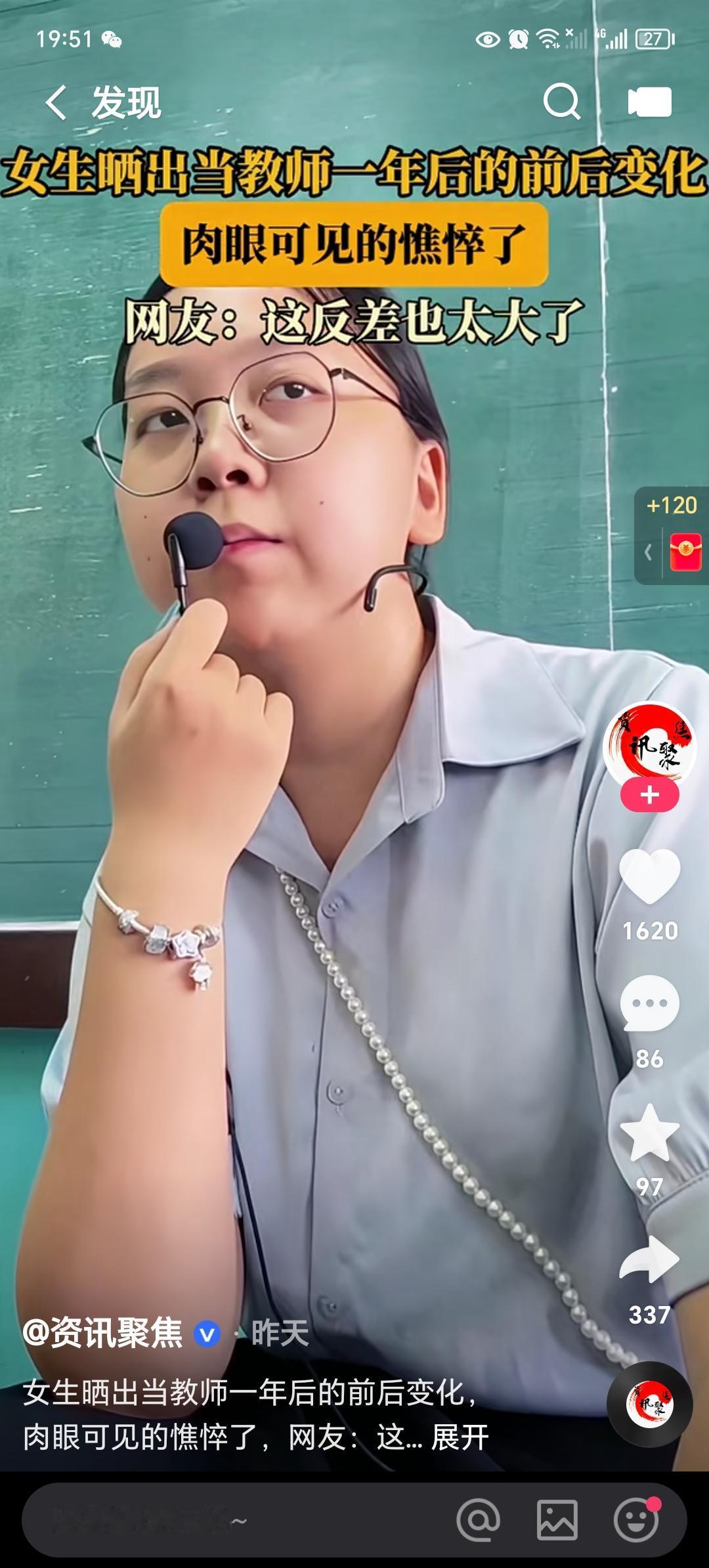 当老师真不容易啊!见证了想长寿不操心! 你相信这是同一个人吗? 只因她当了老师,面相变了。 眉头紧皱,一脸横肉,眼神变的凶神恶煞。 操心和说话多了让老师变了面相,从婀娜多姿的美女变成凶神恶煞的怨妇。 证实了中医们说的:改变心态,保持平常心,人少生病。