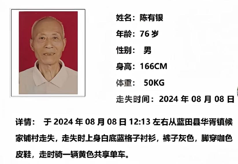 76岁的父亲一生反骨,儿子怎么哄? 2024年8月9日,一张寻人启事让人揪心,76岁的老人陈有银走失,走时骑一辆黄色共享单车,身穿白底蓝格衬衫、灰色裤子,脚穿咖色皮鞋。 发现老父亲不见了,儿子瞬间心慌失措,四处寻找,一直没结果,心急如焚的他不得已发了寻人启事,期望有好心人看到父亲,联系自己。 从老人的穿着来看,很讲究,是精心准备,不可能是迷路了找不到家。可他一句话都没留,骑个共享单车,能去哪儿呢? 陈有银老人1970年入伍,1975年退伍,是位已经退伍50年的老兵。 退伍后,他在老家结婚生子,忙忙碌碌一辈子,日子过得平平淡淡,可他心中一直有个愿望没了:想去看看老连长口中的武汉长江大桥。 2024年8月的一天,老人看田里也没什么事,突然想圆自己心中珍藏了已久的梦想,也没和儿子商量,还把自己精心收拾了一下,骑上单车,从陕西西安蓝田县华胥镇候家铺村出发,目的地武汉,来了个说走就走的旅行。 老人为了圆梦,还绕道开封,去了曾经当兵的连队,到连队官兵们的热情欢迎。 他们明白老人心中的信念,不但没泼冷水,还送他一身新装备,带着官兵们的祝福,老人又踏上了去武汉的漫漫长路。 转辗反侧,老人终于到了武汉,看了武汉的3座长江大桥。他不知道哪一座是老年长口中的武汉长江大桥,但每一座桥,在夜晚的灯光下,都很美。 事情被媒体曝光后,武汉文旅向老人发出邀请,再次畅游武汉。 结果很圆满,老人也和多年没联系的老连长取得了联系,他们电话视频了,一起回忆了往事,了却了今生的遗憾。 老人的愿望满足了,可急坏了在家的儿子。 老小老小,人老了又变成了孩子,做事会不顾后果。 我国已经进入老年化社会,老人越来越多,怎么和老人相处呢? 2个字:哄、顺。有情绪的时候,哄着点;不是本质性问题,顺着他。 你陪我长大,我伴你到老。今生父母,一世情缘。