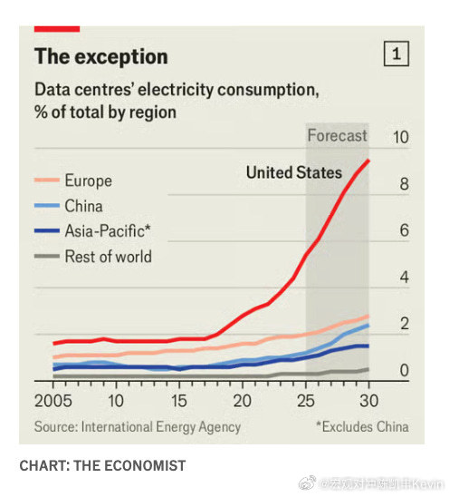 美国数据中心用电量增长和能源占比里面都是在全球遥遥领先啊美国宏观经济凯丰基本面科