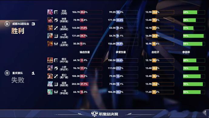 AG年总率先拿到赛点 可以说AG这边的状态一直很好,全程都是属于稳中求进的存在,所以这次也是他们率先拿到赛点