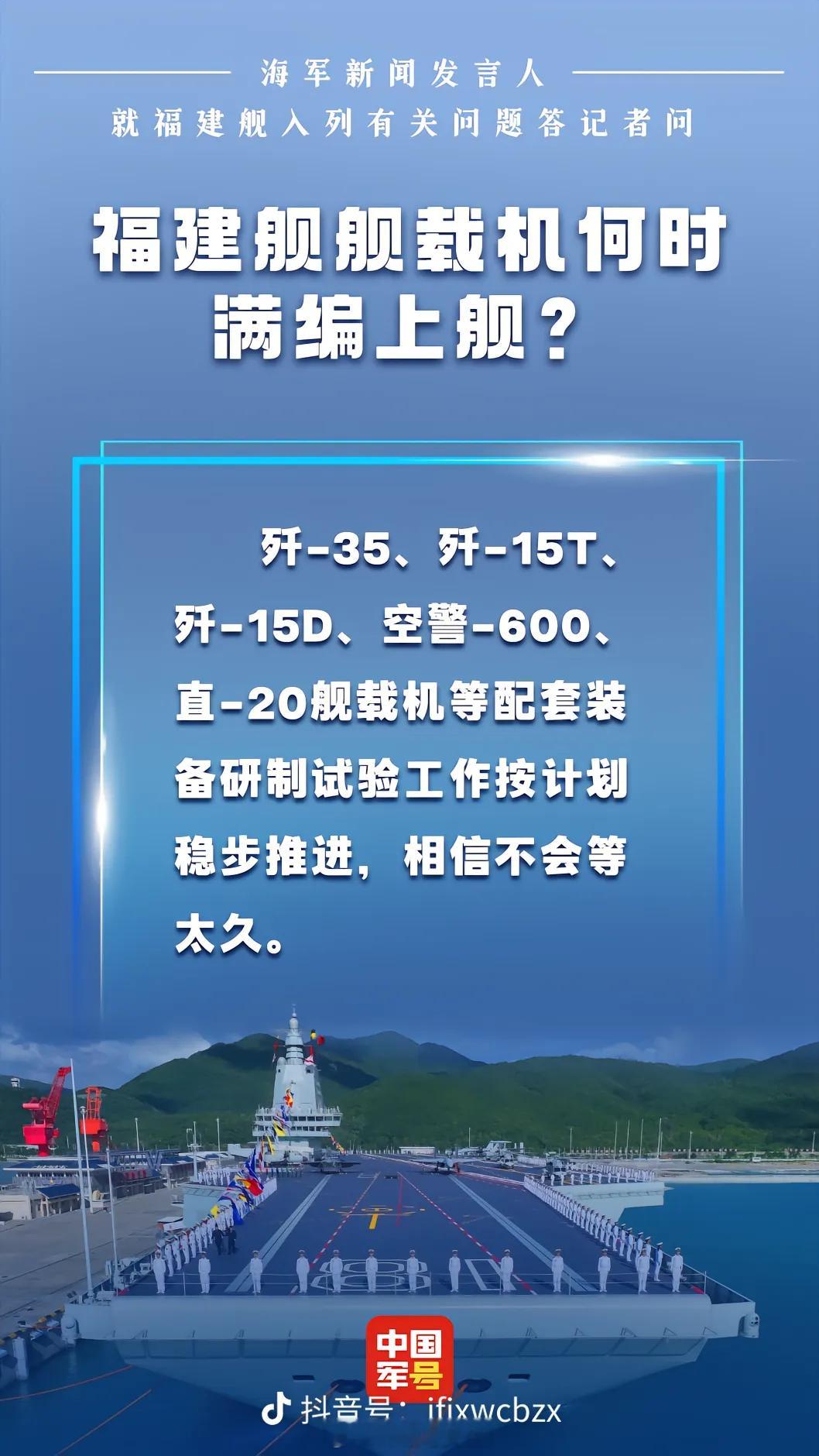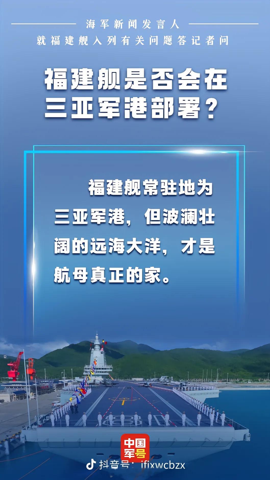 11月8号,海军发言人就福建舰入列回答记者相关问题:福建舰