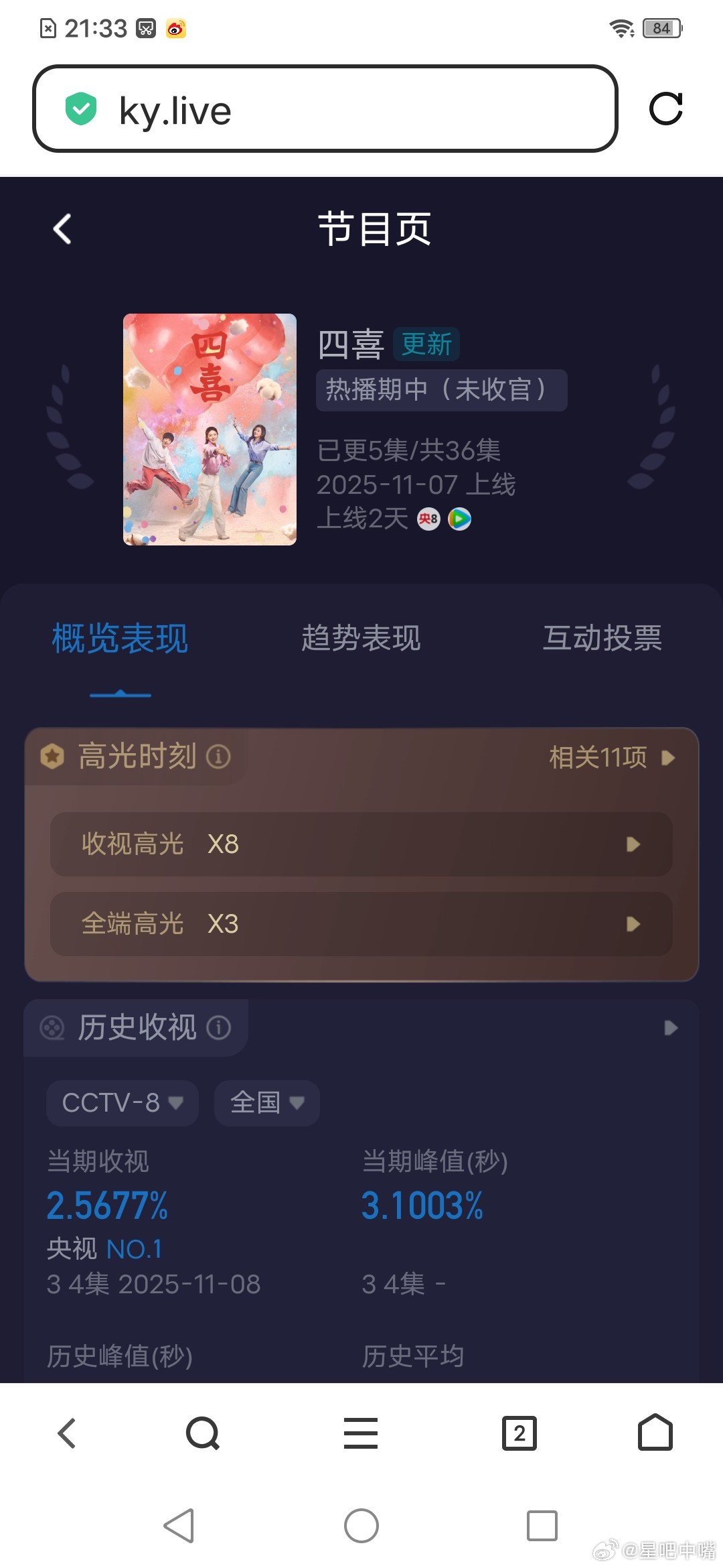 电视剧四喜《四喜》开播第二天收视率小涨!今晚双集双双破3,平均2.5677小涨[good]!收视已稳!期待后续有更大的涨幅!