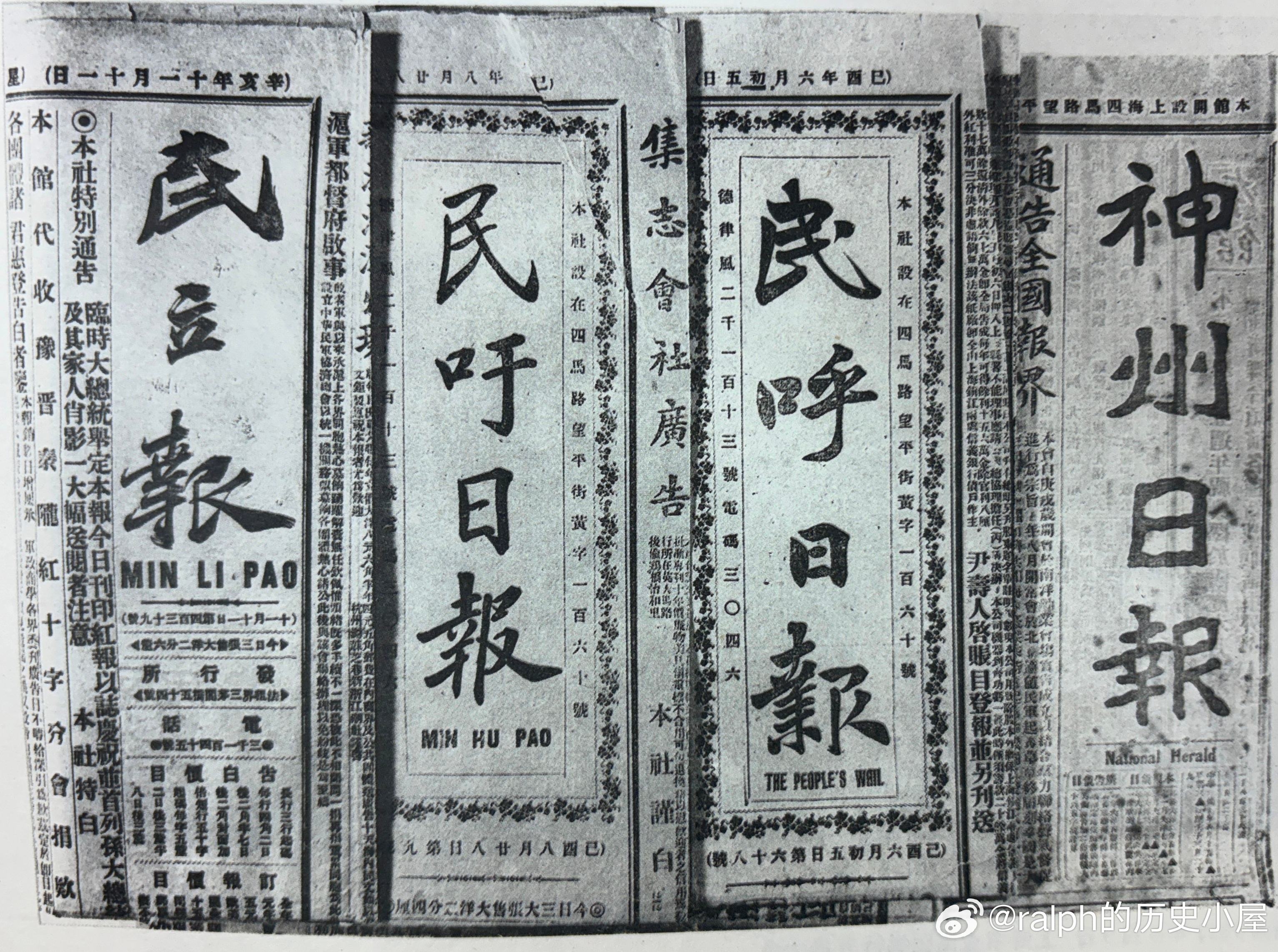 辛亥革命前夕,于右任在上海先后创办《神州日报》、《民呼日报》、《民吁日报》、《民立报》等革命报刊,深受读者欢迎。1911年7月同盟会中部总会成立后,《民立报》成为它的机关报历史影像