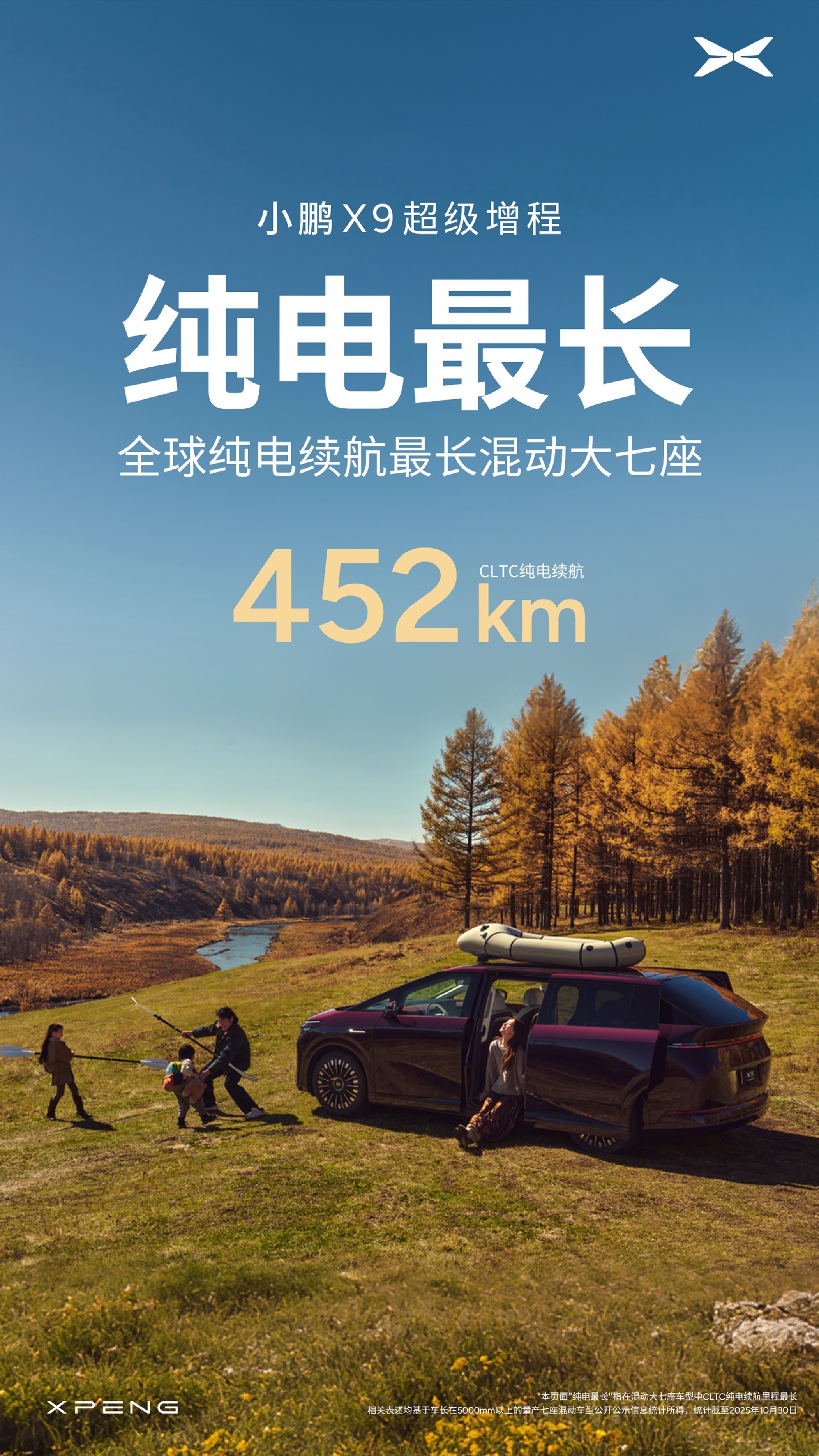 小鹏X9超级增程综合续航1602公⾥, 是全球综合续航最⻓的⼤七座, 在增加了油箱和增程器的情况下,仍然保留了后轮转向、 三排下沉储物空间等同级领先优势, 和纯电⼀样的全能与实⽤, 是同级转弯半径最⼩的⼤七座, 也是全球唯 ⼀第三排⼀键电动收纳的⼤七座。 在整⻋质感上, 全新极光⻘⻋漆采⽤劳斯莱斯同款巴斯夫清漆, 前脸新增超跑同款AGS智能可变进⽓格栅, 内饰新增云间玫棕拼⾊内饰, 采⽤⽆铬鞣全粒⾯Nappa真⽪、⼤量阿尤斯真⽊让内饰质感⼤幅提⾼;全系升级电容式⽅向盘以及全系升级27颗HiFi级扬声器, 达到影院级⾳质。小鹏X9超级增程太强了小鹏X9超级增程今晚预售