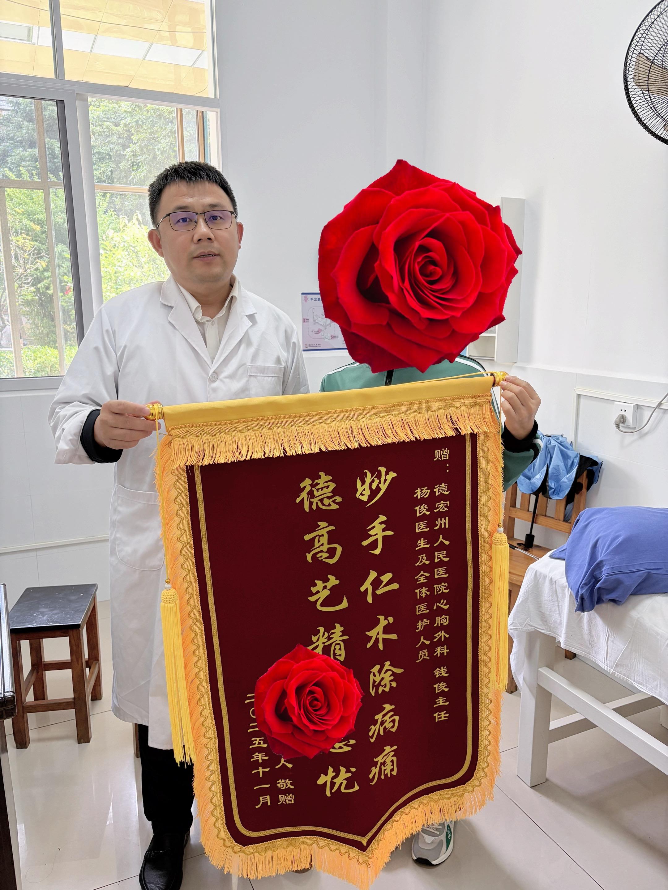 生日当天,收到病人送的锦旗,祝身体健康。生日当天,收到病人送的锦旗,祝...