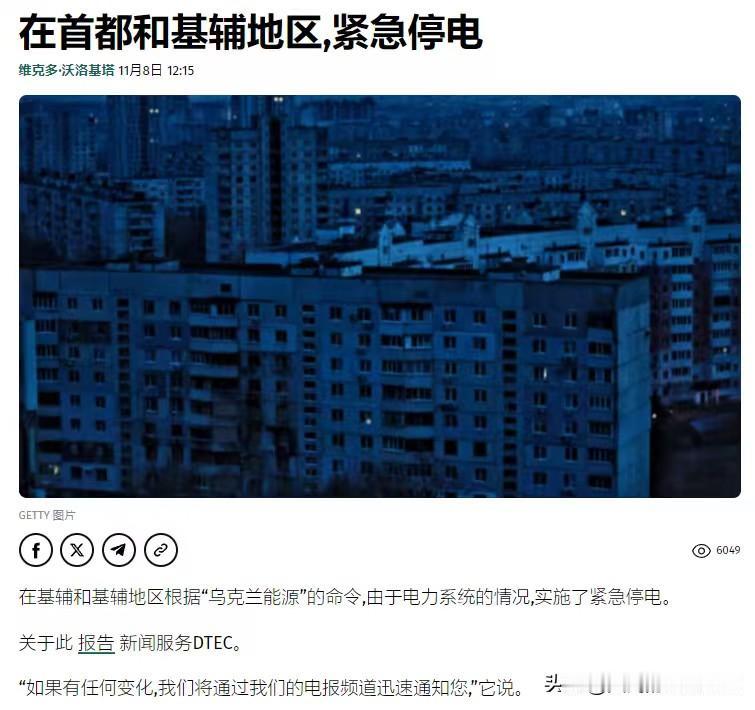 乌克兰能源公司刚刚宣布,由于11月7日夜间遭到俄罗斯大规模无人机导弹的袭击,造成的严重结果,该公司旗下的所有火力发电站均暂停运作。 截止到目前,乌克兰多地已处于停电状态,其中包括乌克兰首都基辅。具体恢复时间不详。 另外,由于停电,给基辅地区正常秩序造成了严重影响。地铁,公共交通,有轨电车,无轨电车均因停电造成晚点,甚至停运。