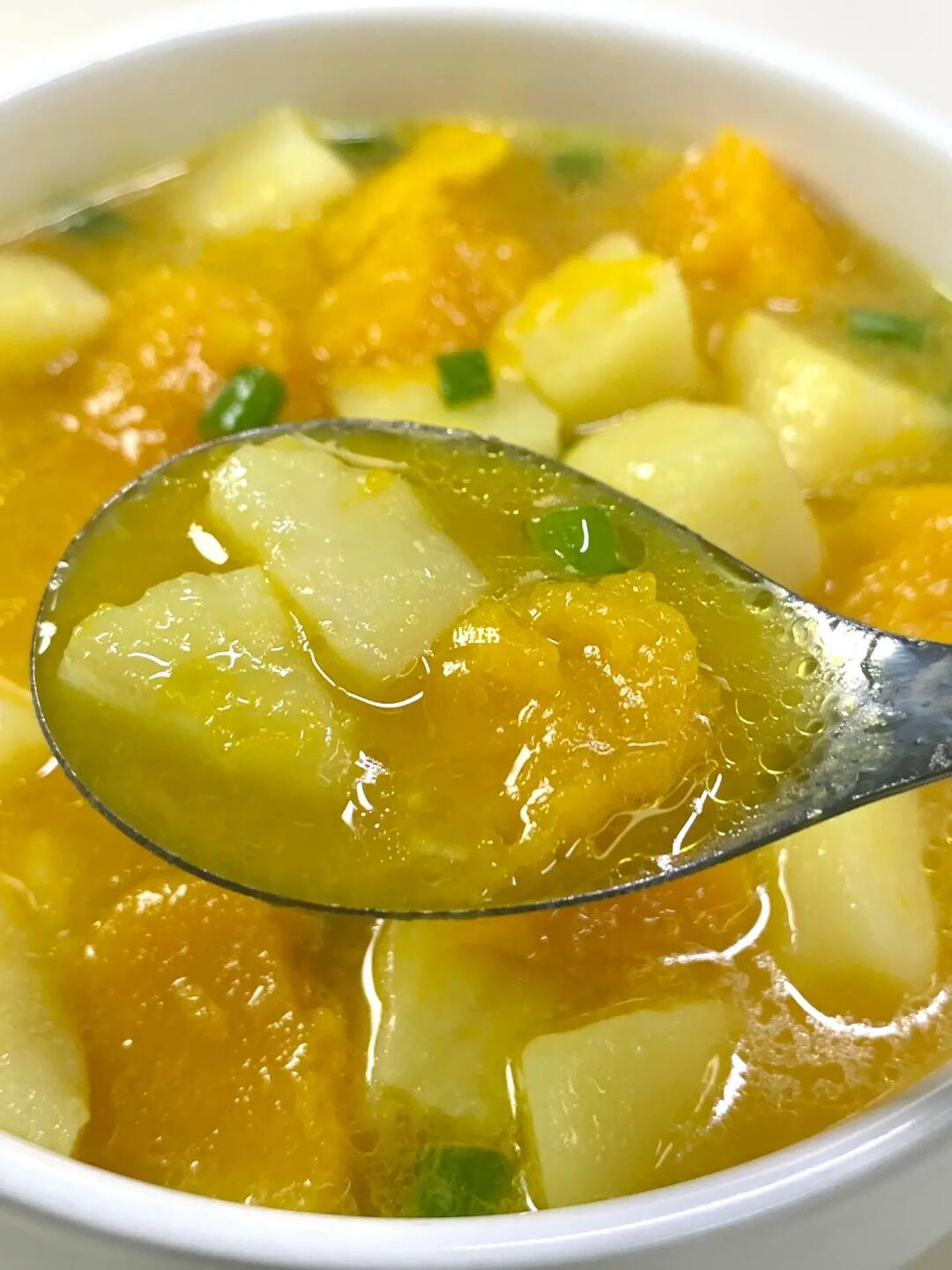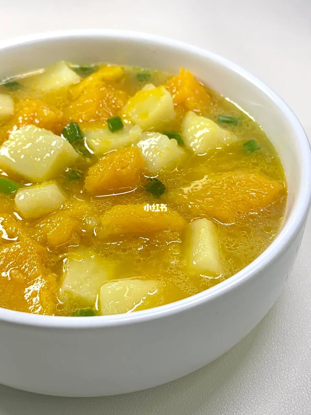 今天拿土豆和南瓜做个简单的南瓜汤,巨好吃!南瓜煮得糯糯的带着清甜,土豆绵密鲜咸巨好喝!! 推荐给姐妹们去试试[赞R][赞R][大笑R] 食材:土豆、南瓜、葱花 [飞吻R]做法如图所示~