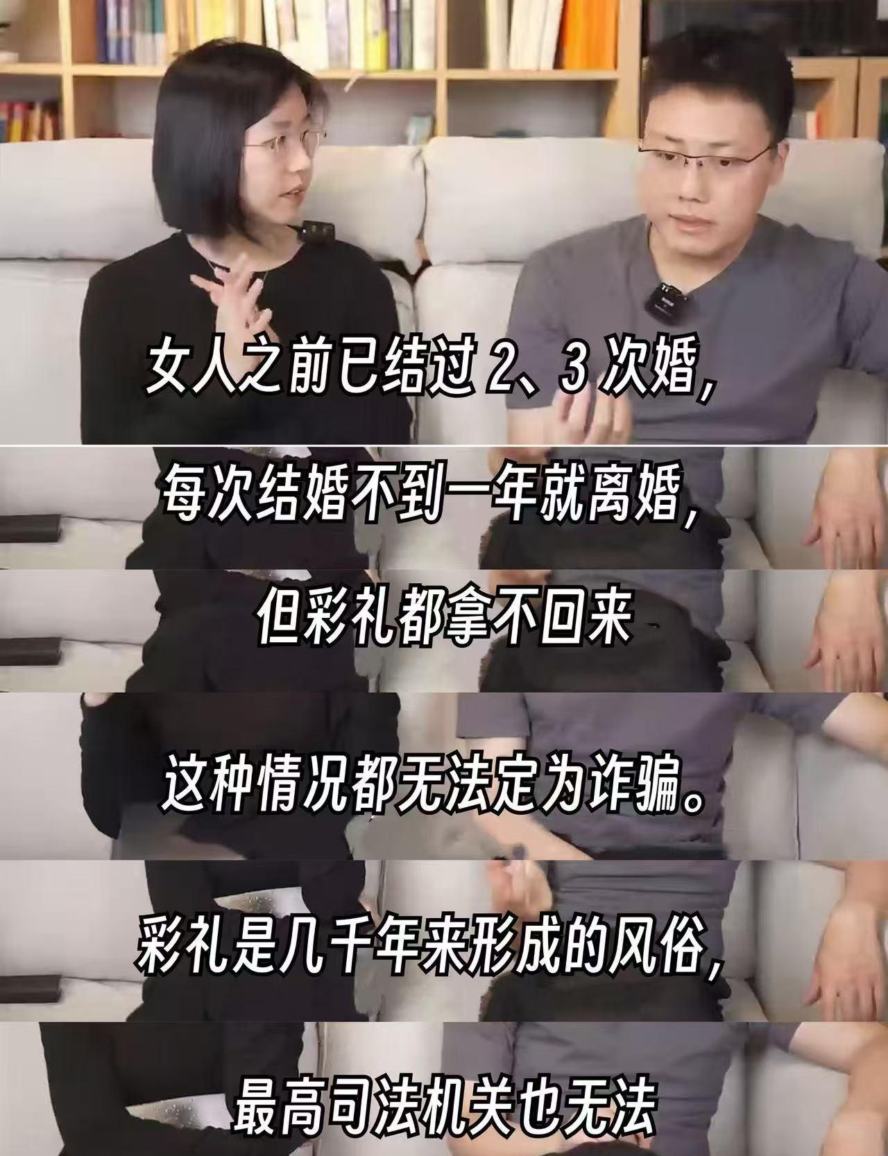 打赏女主播两千万能追回吗老韩聊到婚姻诈骗时真相了:有人结23次婚骗彩礼都不算刑事犯罪。因为彩礼是民俗,司法机关很难一刀切。他提醒:婚前查对方婚姻记录太重要了。