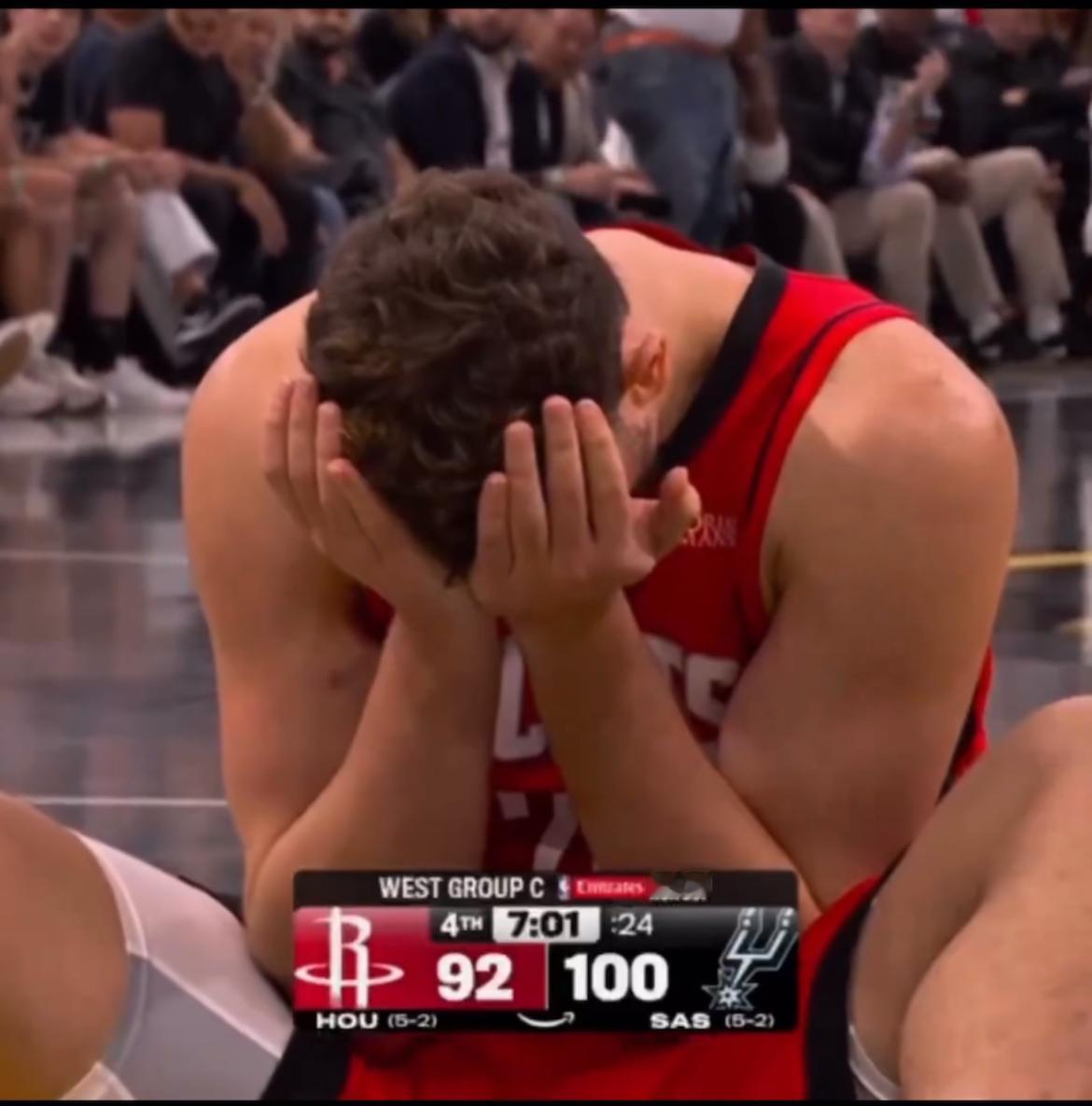 这孩子学坏了!一个是戏精,一个太老实,一个人受骗。申京被文班碰了一下,反应强烈,捂着脸差点摔倒在地(下一个直接坐在地上),而且就在裁判眼皮底下。 NBA就是艺术大舞台! 火箭申京