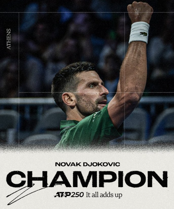 ATP250雅典站决赛,头号种子德约科维奇兑现第二个发球胜赛局,以4-6 6-3 7-5逆转二号种子穆塞蒂,对其取得6连胜,斩获本赛季第2座、职业生涯第101座巡回赛男单冠军。恭喜诺瓦克