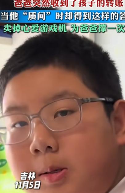 太感人!近日,吉林,上初中的儿子突然给父亲转了两千多块钱,父亲赶紧过去问,一问才知道,儿子是把自己的游戏机给卖,父亲疑惑的问:你卖了干啥啊,没想到儿子的一句话把父亲和网友都说哭了。 厨房里传来“滋啦——”一声,锅里的水早就烧干,散发出焦糊的味道,空气里弥漫着一股淡淡的苦涩气息。 父亲坐在那张掉了漆的木沙发上,手里攥着那部用了多年的旧手机,屏幕上不停地闪烁着“未知号码”。 他盯了很久,眉头紧皱,喉咙里像堵着什么似的。终于,铃声第五次响起时,他深吸一口气,咬了咬嘴唇,按下了“接听”键。 “喂,老李啊,我这边真不行了,今天必须得还点。” 电话那头的声音带着不耐烦,冷冷的语气让人心里发紧。 父亲赶紧站起身,语气里透着小心和疲惫:“哥,我真不是不还,我这两天在催工地发工资,真拖得我也没办法。再给我两天,我一定送过去。” “你每次都说两天!现在都快一个月了。”那头的人不依不饶,声音拔高,“你要是再不还,别怪我上门找你!” 父亲的手指紧紧攥着手机,额头青筋暴起。他看了一眼墙上贴着的儿子奖状,努力让声音平稳下来:“哥,我真不是赖账的人。孩子上学要钱,家里还欠房租……你放心,我一定想办法。” 电话那头沉默了几秒,最终只甩下一句冷冰冰的话:“你最好别让我再打这个电话。”随即“嘟”的一声挂断。 屋里再次安静下来,只剩下挂断后的盲音。父亲呆呆地站着,过了半晌,才慢慢把手机放下。手心早已被汗水打湿。 他走进厨房,关掉了那口早已烧焦的锅,看着那层黑黑的锅底,苦笑了一下。那笑容里没有一丝轻松,只有掩不住的疲惫。 他知道,欠的钱不多,却压得人喘不过气。生活像一只看不见的手,一点点掐紧他的脖子。 就在这时,卧室门轻轻一响,儿子探出头来,小心地看了他一眼。那双清澈的眼睛里,藏着他没发现的心疼…… 第二天晚上他的手机“叮”的一声,跳出一条转账提示:“收到转账2000元。” 汇款人——儿子。 父亲愣住了。 他几乎是第一时间跑进了儿子的房间。 房间很小,一张书桌,一张床,靠窗的位置堆着几本练习册和一台曾让他喜爱的游戏机——那是儿子去年攒了半年零花钱才买的。 那时他曾气得责备过:“上初中还买这种东西!”可转念一想,孩子成绩不错,偶尔玩玩也无妨,便没再多说。 可如今,游戏机不见了。 儿子正坐在书桌前写作业,见父亲进来,抬头笑了一下:“爸,回来啦。” 父亲没回答,声音有些颤:“你给我转钱了?” 儿子点点头,笑容淡淡的:“嗯。” “哪来的钱?”父亲的嗓子有些哑。 儿子犹豫了一下,轻声说:“我把游戏机卖了。” 父亲愣了几秒,眉头皱得更紧:“卖了?” 儿子抿着嘴,沉默了一会儿,然后低声说道:“爸,我听见你接电话了……那天晚上,你在客厅打电话,我听到有人催你还钱。你挂了电话后一个人坐了好久。” 他的话越来越轻,眼神却越来越坚定,“我知道你最近压力大,我也想帮帮你。” 父亲喉头一紧,想说什么,却一句也说不出来。 儿子接着说:“那游戏机是我自己攒的钱买的,我想了想,其实我也不太玩了。卖了它,还能帮你解点燃眉之急。爸,我以后不打游戏了,我好好学习,以后挣钱让你过好日子。” 那一刻,父亲的心猛地一缩。 这个平时还爱吃零食、放学回来喊饿的小男孩,竟然已经开始懂事到这种地步。 他伸出手,想摸摸儿子的头,可手刚抬起,就有点发抖。 “傻孩子……那钱爸不要。” “爸,你就收下吧。”儿子笑了笑,眼神里闪着一点泪光,“我长大了,也该懂点事了。你以前说男人要担当,我记着呢。” 父亲再也忍不住,伸手把儿子紧紧抱在怀里。 那一刻,他的泪水彻底夺眶而出。 那一夜,父亲失眠了。 他躺在床上,脑子里全是儿子那句:“我以后不打游戏了,我好好学习。” 他忽然觉得,这世上最珍贵的财富,不是钱,也不是房子车子,而是这个懂事的孩子。