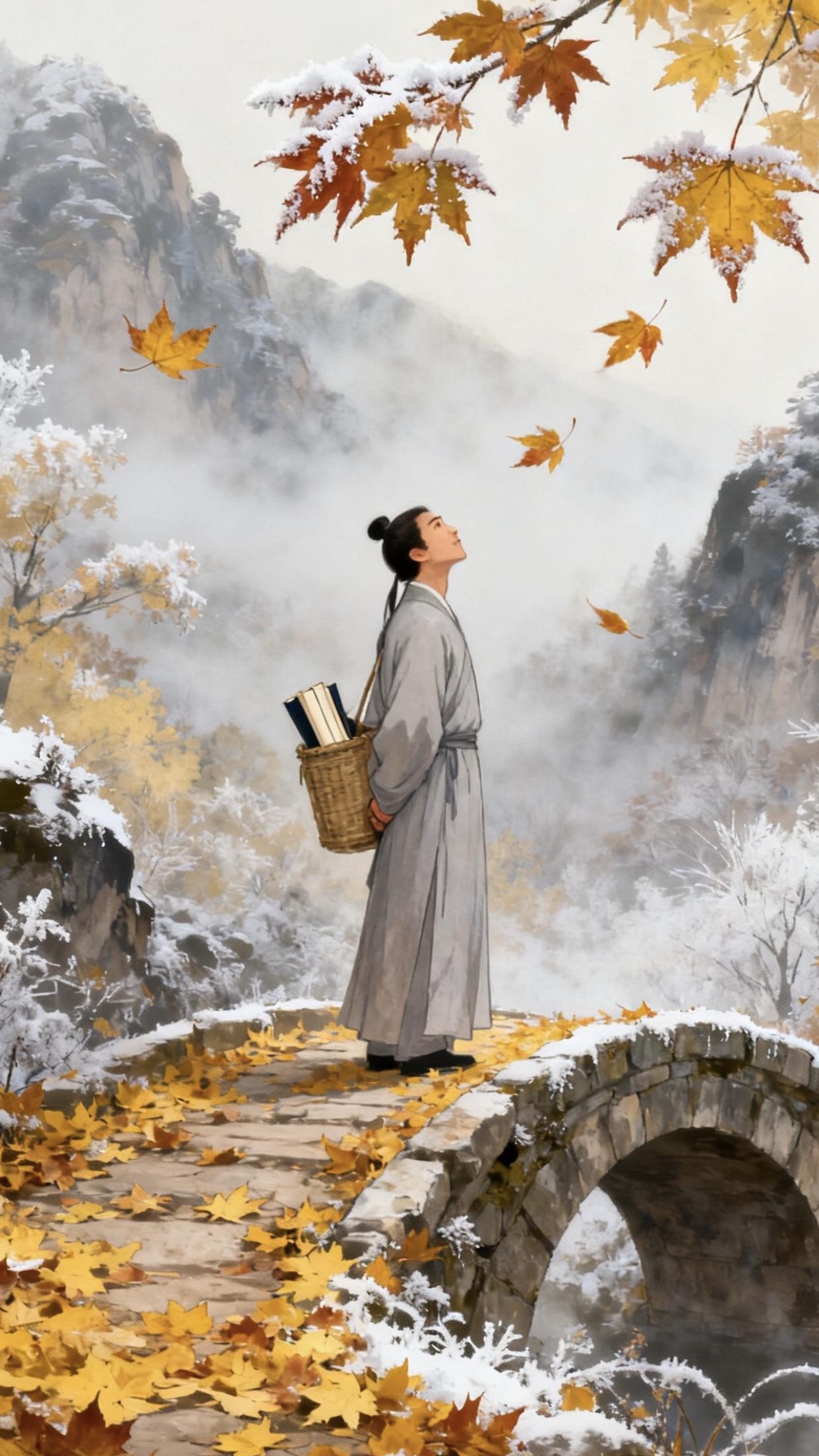 冷露湿晚菊。 意境: 此联更侧重描写秋夜至清晨的自然细节:上联霜使叶黄,下联露染菊湿。既写秋之肃杀(叶黄),又写秋之高洁(菊晚)。画面细腻,带着一丝清寒与孤傲。