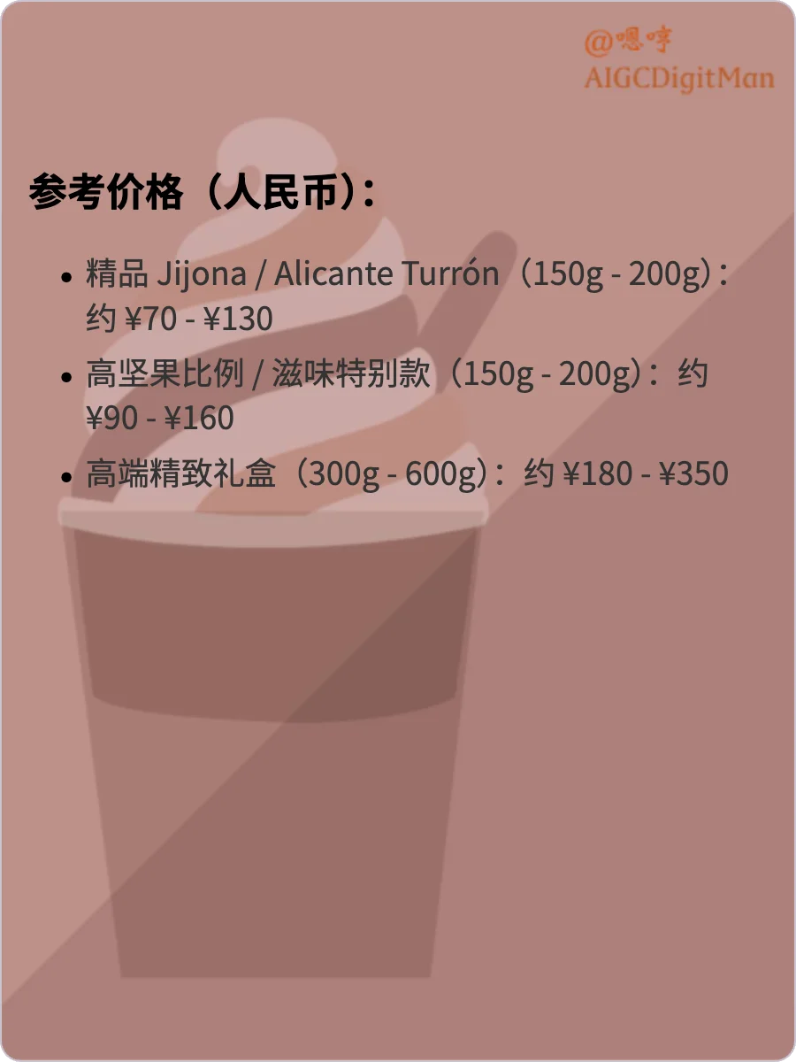 精品 Jijona / Alicante Turrón(150g - 200g):约 ¥70 - ¥130