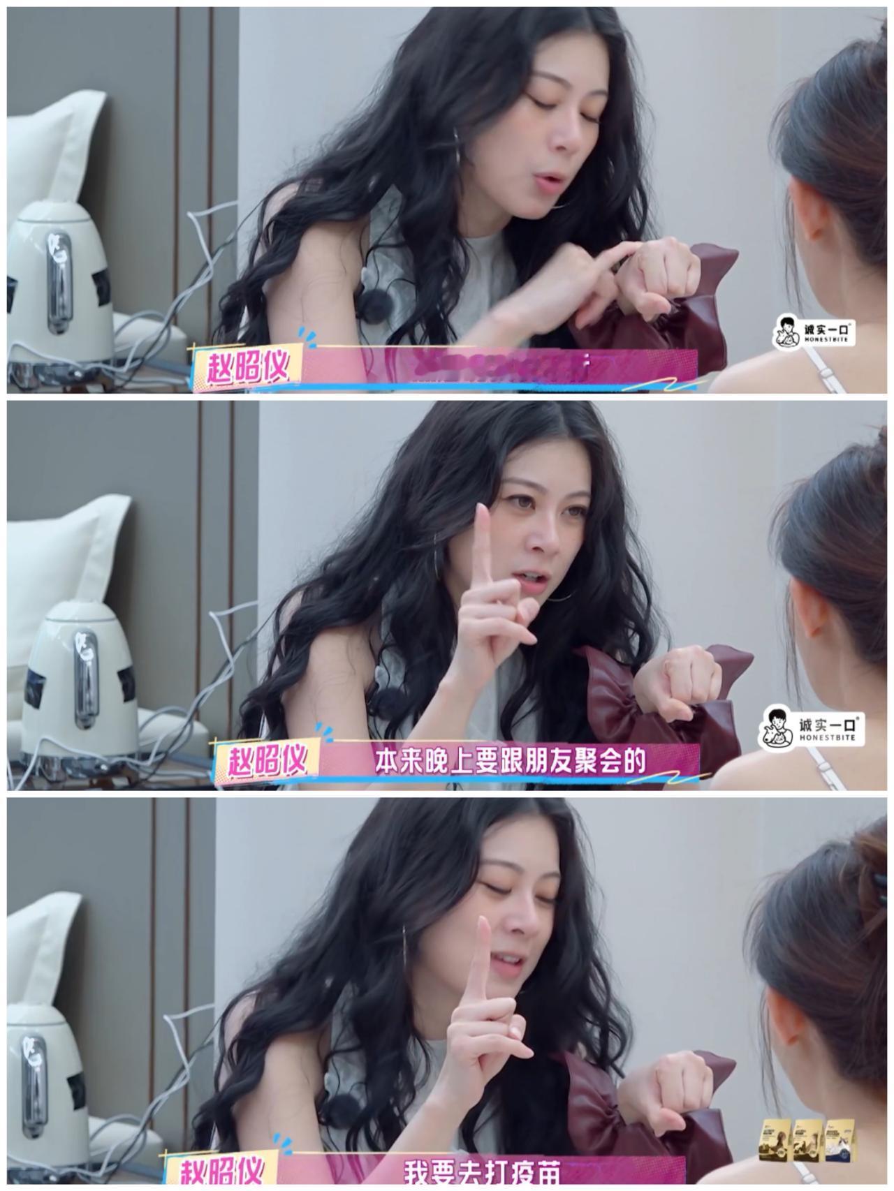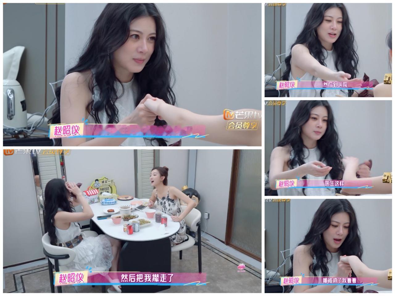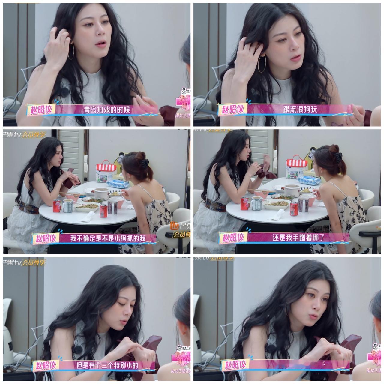 赵昭仪和罗予彤吃饭聊天 谈及赵昭仪在青岛看医生 被医生立刻撵出去。 赵昭仪在青岛拍戏与流浪狗玩耍, 后来发现手上多了三个竖型的小伤口, 不确定是否是被狗抓伤的, 还是自己不小心剐蹭到的, 为了安全起见, 她推掉了晚上的聚会, 马上去看急诊。 结果医生看到她的小伤口, 立刻把她撵走。 理由是那个伤口像大拇指那么小, 不认真看都看不出来, 而且没有明显外伤, 也没有出血。 她那个伤口也许小到 她可能晚一点上医院, 就自己愈合了吧。 那个医生看的都是急诊, 在赵昭仪前面一个病人就是 小朋友把灯泡塞嘴巴里 取不出来。 按照医生的专业判断, 赵昭仪这个伤口是没有问题的 于是赵昭仪就被赶出去, 后面还有比她严重的病人等着呢。 也许你会觉得赵昭仪小题大做, 但是她不被医生看过, 她是不会安心的, 就算被医生赶出来, 她也是知道自己是没事的。 这样才可以睡个安稳觉呀, 就是寻求一个心理安慰。 我们普通人都不是专业医生, 不知道自己病情如何, 有时去医院, 就算没有大的问题, 也是为了寻求一个心理安慰。 看来给赵昭仪看病的医生 也是良心医生呀 换作其他医生, 为了追求业绩, 就算是小伤或者没事, 也会给安排一些有的没点检查, 主打“不放你一点血,就不让你走出去”。 赵昭仪真是太幸运了。