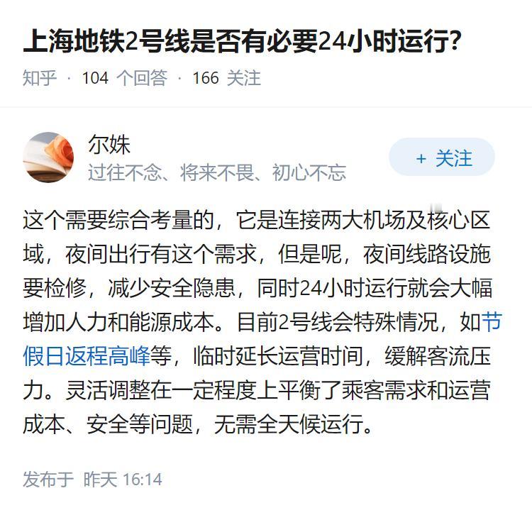 上海地铁2号线是否有必要24小时运行?