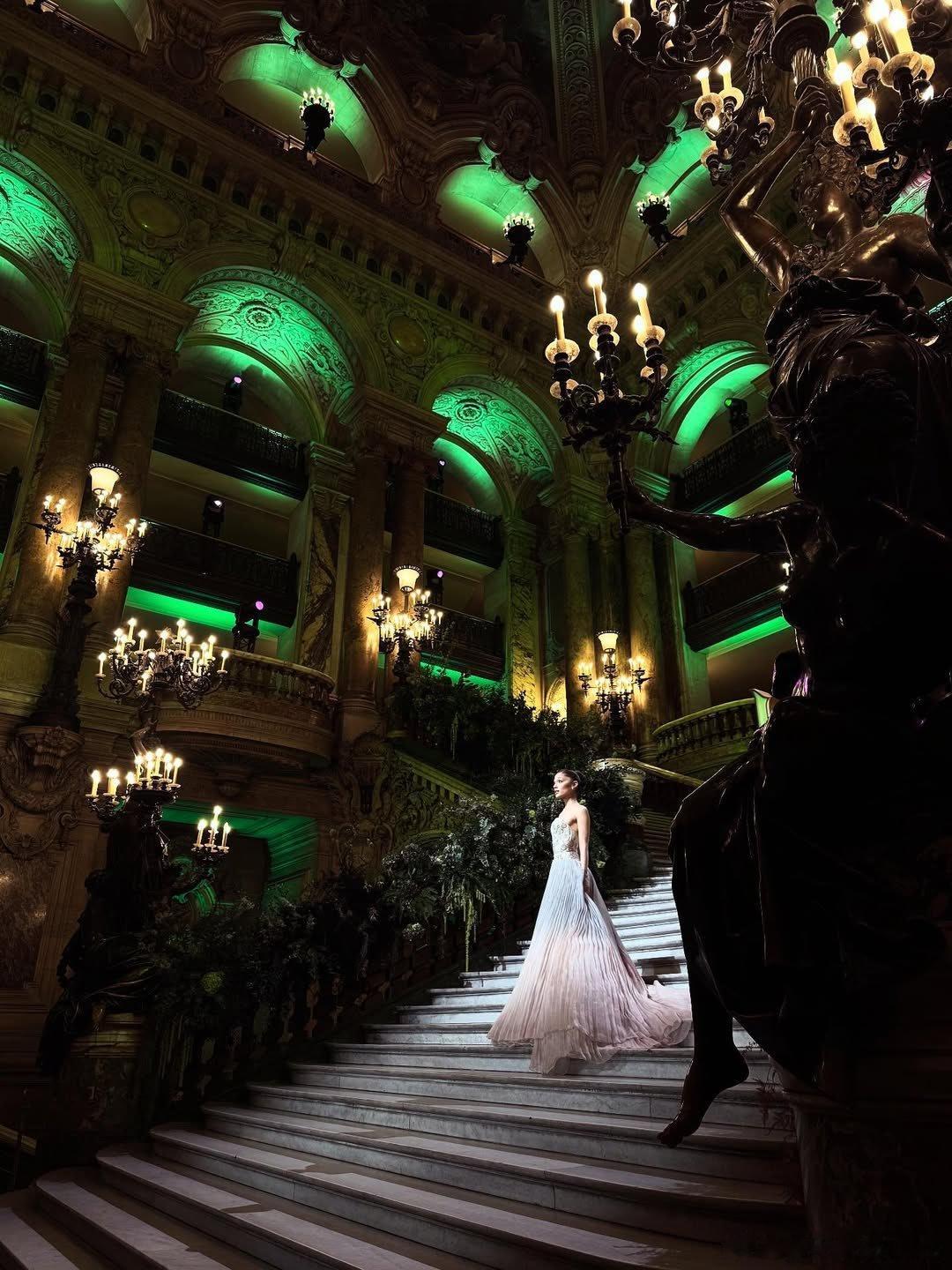两张爱莉安娜·格兰德在《魔法坏女巫2》巴黎首映式上的照片