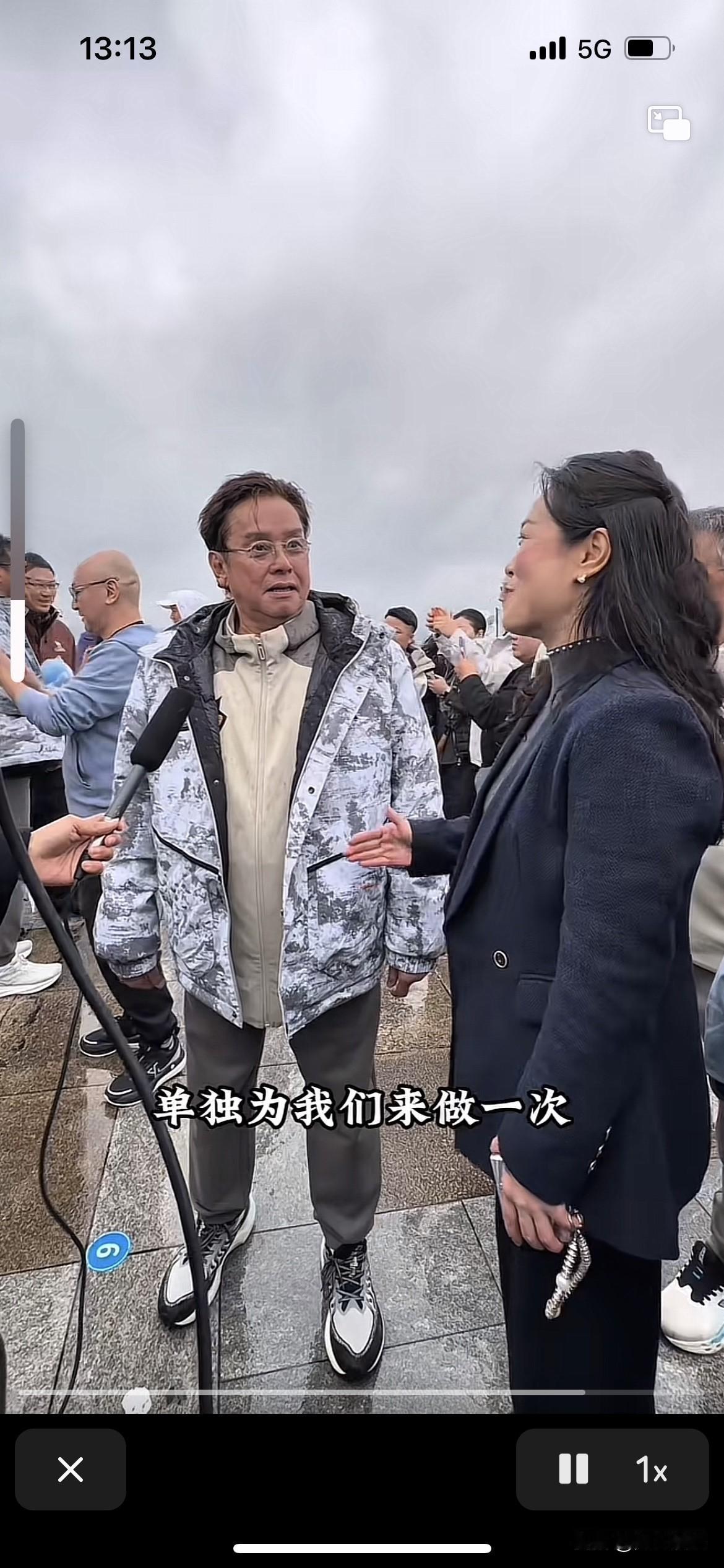 谭咏麟老师变化很大了,开始慢慢变老了,肚子大头发变少,一副老年人的模样,岁月流逝,他们一个个都开始变老,曾经陪伴我们度过快乐时光,如今也是暮年了。 很喜欢听他唱的每一首歌,这些经典老歌百听不厌,赞不绝口,应该没有人不喜欢的,而且香港的这些演员真的很接地气的,采访合照都是随叫随到,也没有惊吓到群众。