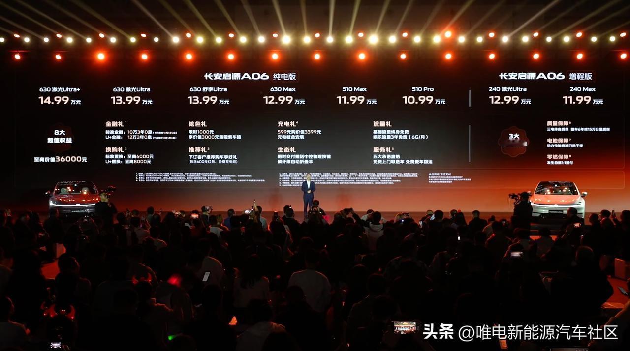 长安启源A06正式上市[思考]纯电版售价10.99-14.99万元,增程版售价1