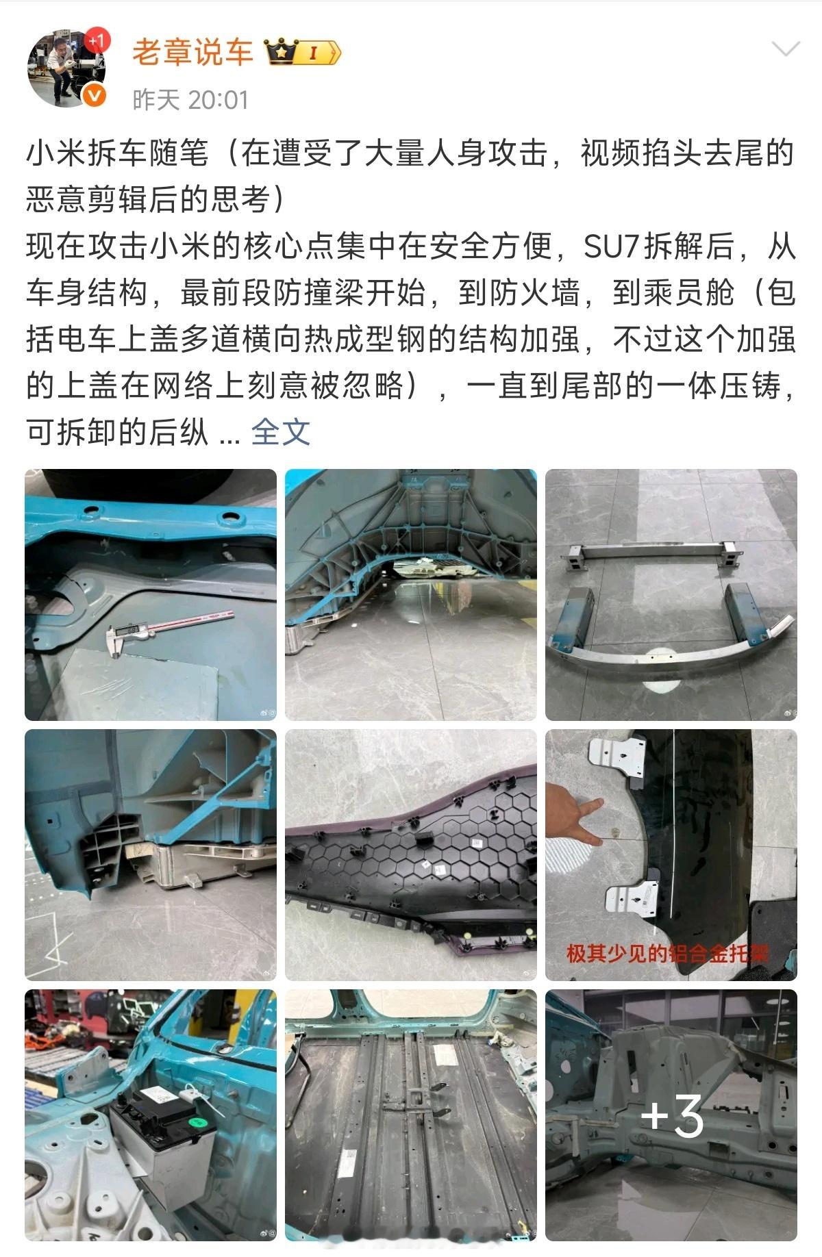 从拆解细节来看,小米SU7的通风盘、电池防护、镀锌工艺等方面达到同级领先水平。同时,该车型应用了大量新工艺与新技术,相关技术应用对汽车工业发展具有推动作用,绝非网络喷子说的偷工减料 ...