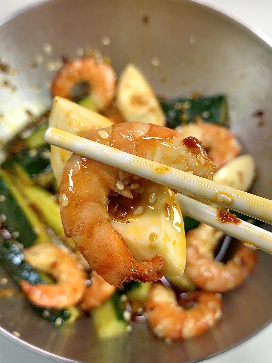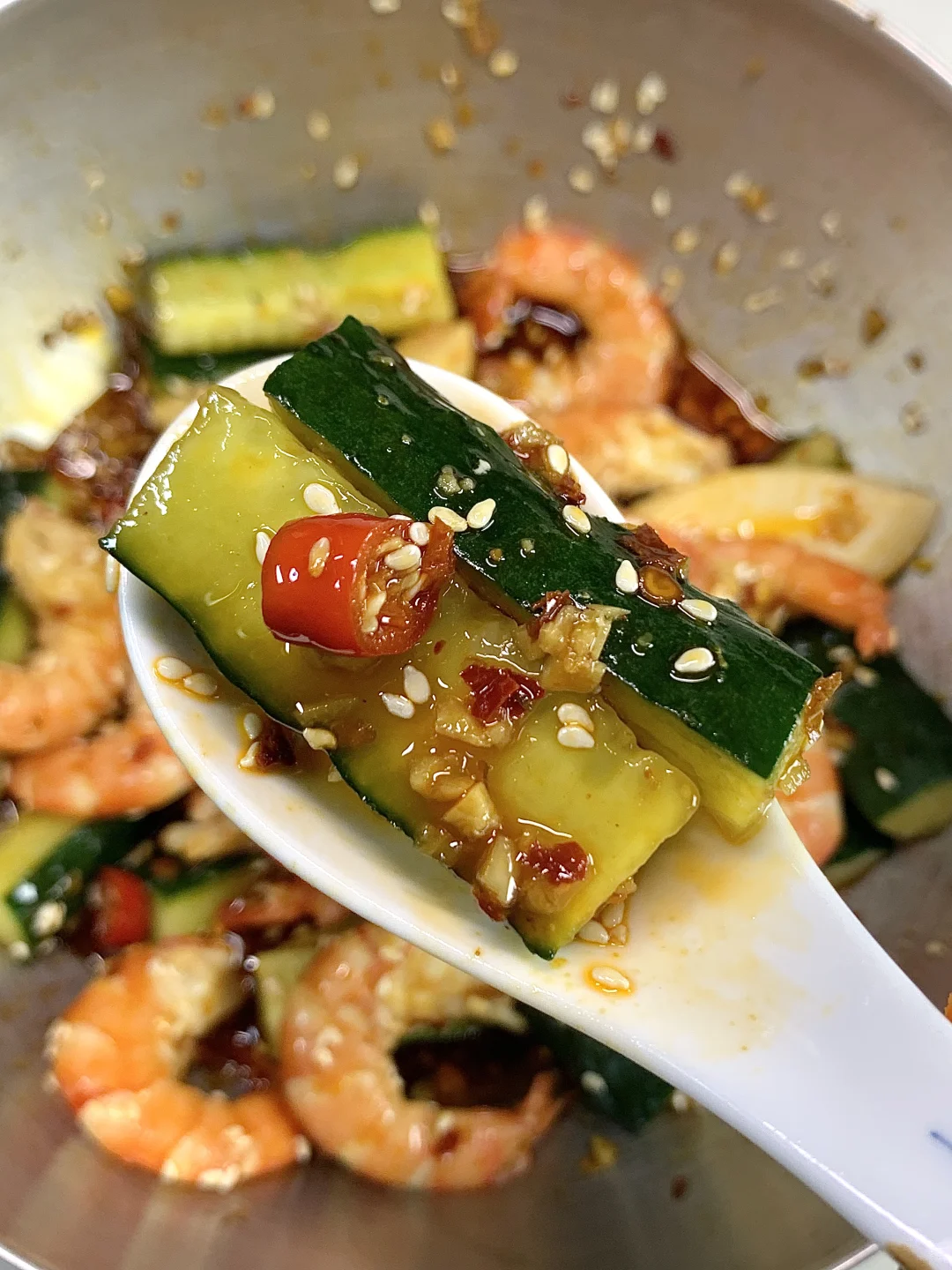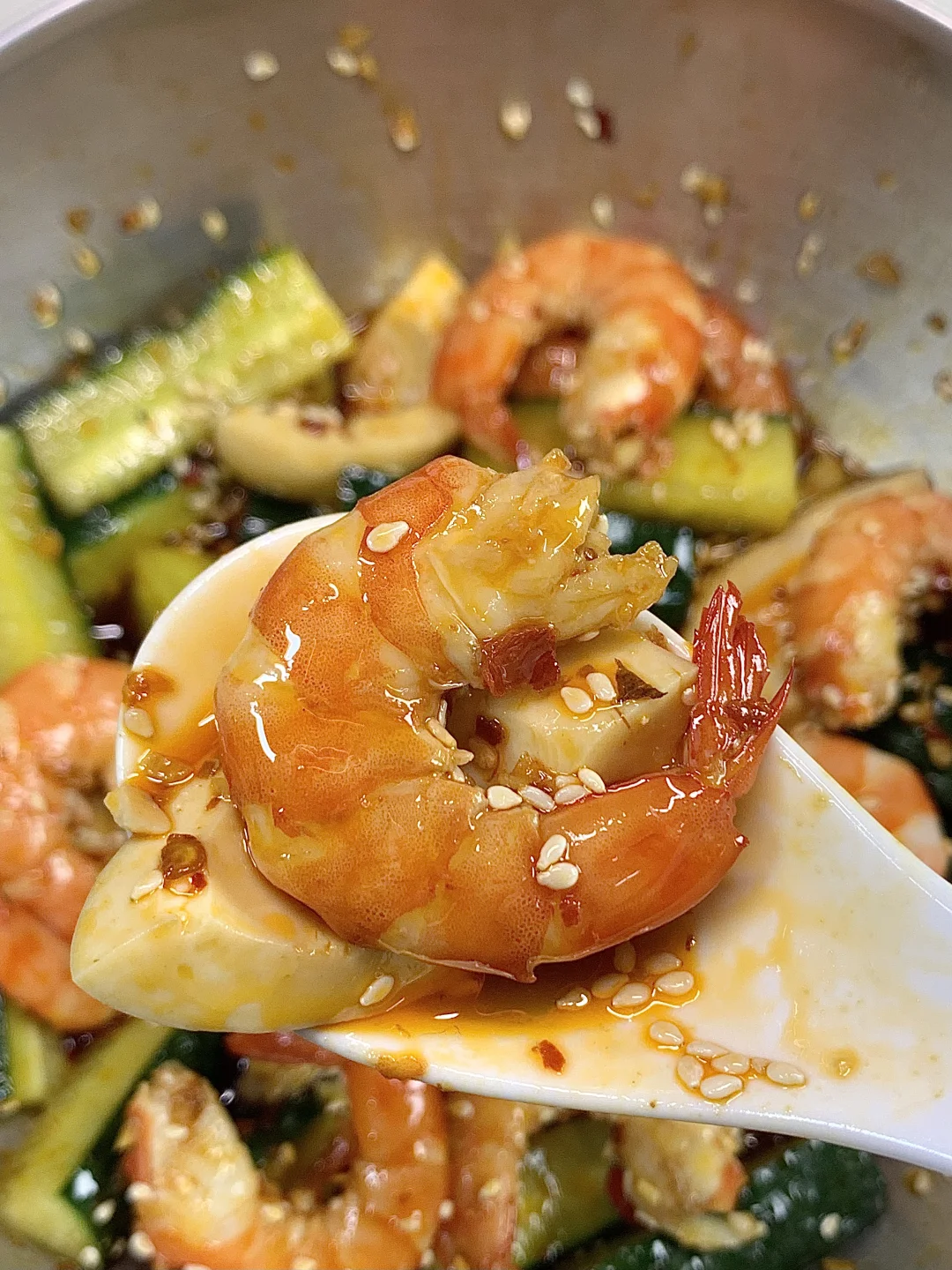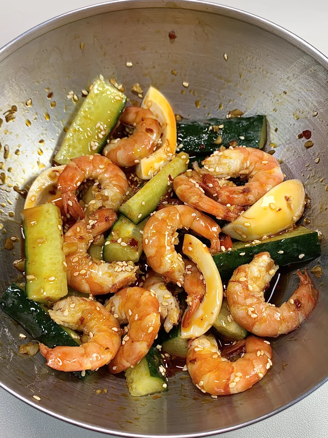 姐妹们要的减脂餐又来咯,凉拌虾仁黄瓜天天吃都不够,黄瓜清脆好吃,虾仁Q弹鲜美高蛋白,淋上自制酱汁,吃起来绝了! ✔️食材:虾仁、黄瓜、鸡蛋 ✔️做法:如图所示~ [飞吻R]酱汁:碗中放蒜未+小米辣+辣椒面淋上少许热油,再加2勺生抽+1勺蚝油+1勺香醋拌匀即可✅