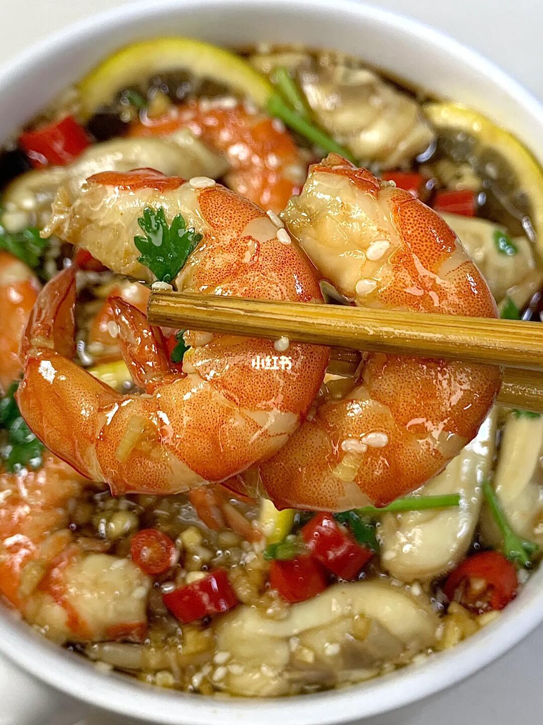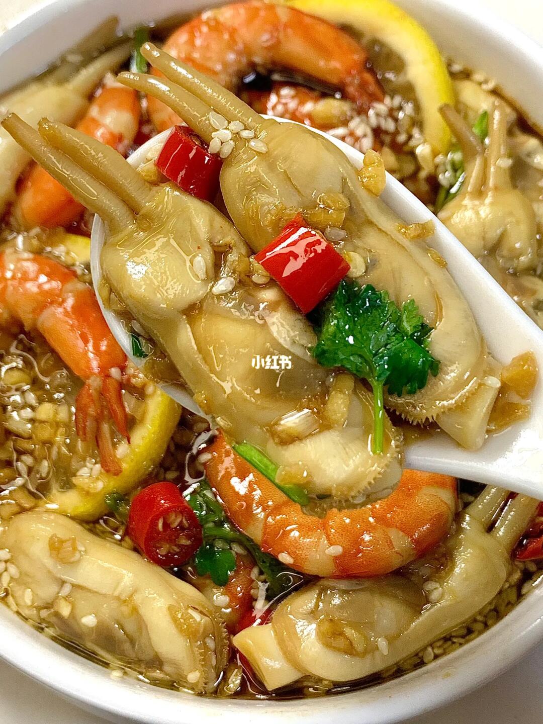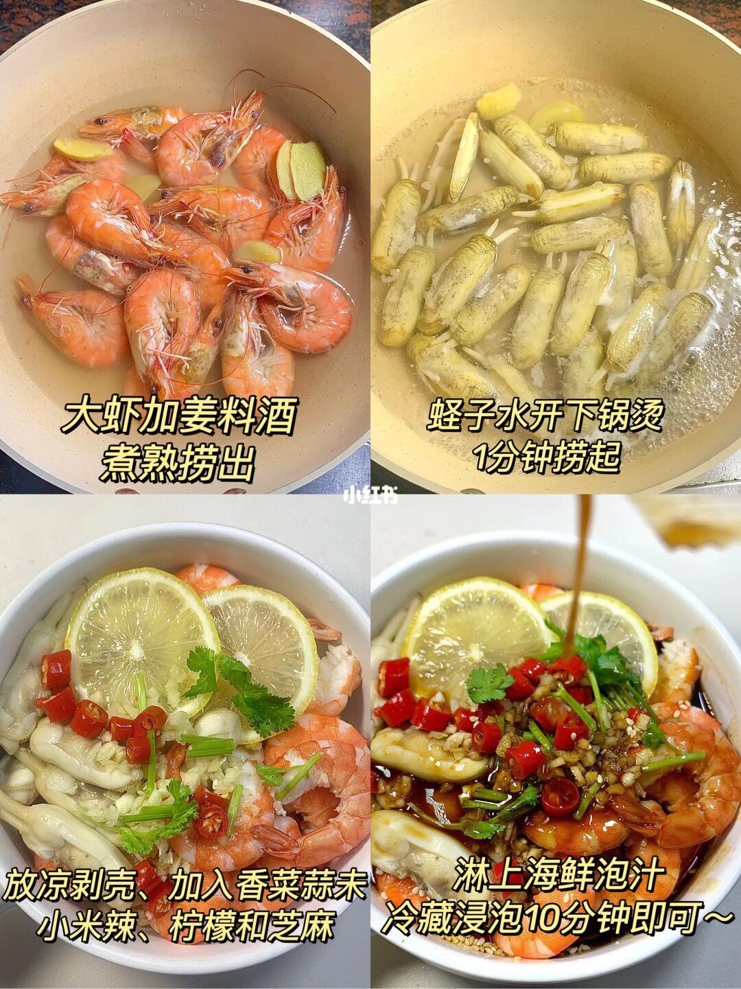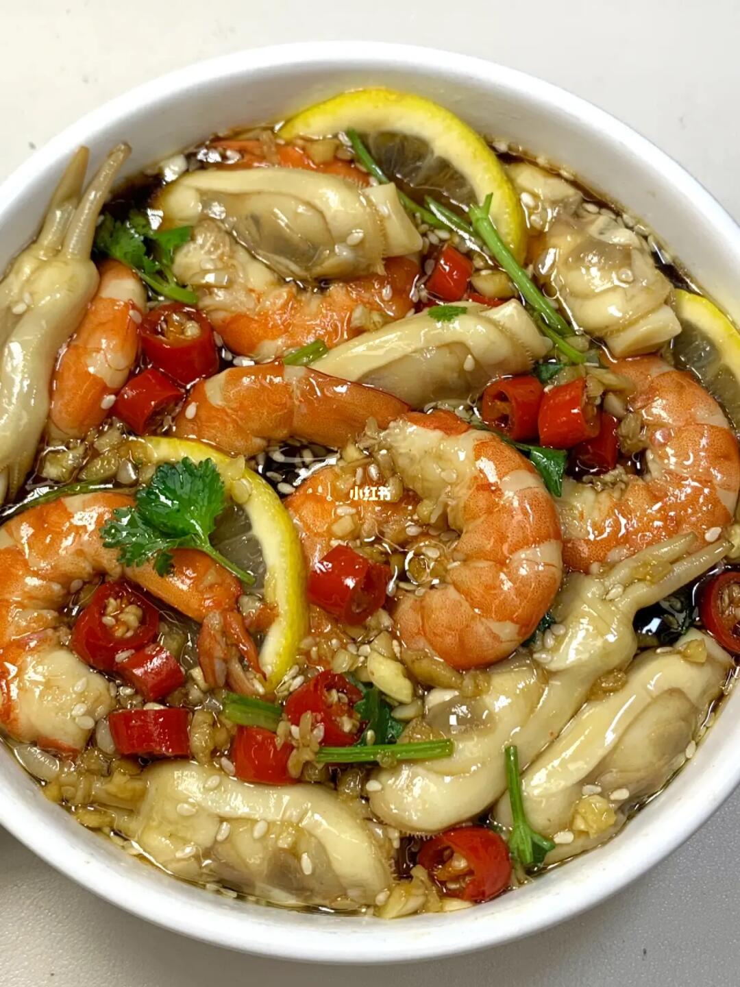 这道捞汁小海鲜真的好吃呀!! 虾仁Q弹入味!蛏子鲜嫩!裹满了酸酸辣辣的酱汁! 夏天来一盘都不够吃!! 食材:大虾,蛏子,小米辣,蒜,香菜,白芝麻,淋上海鲜捞汁冷藏浸泡10分钟即可。 做法在✅图片上~