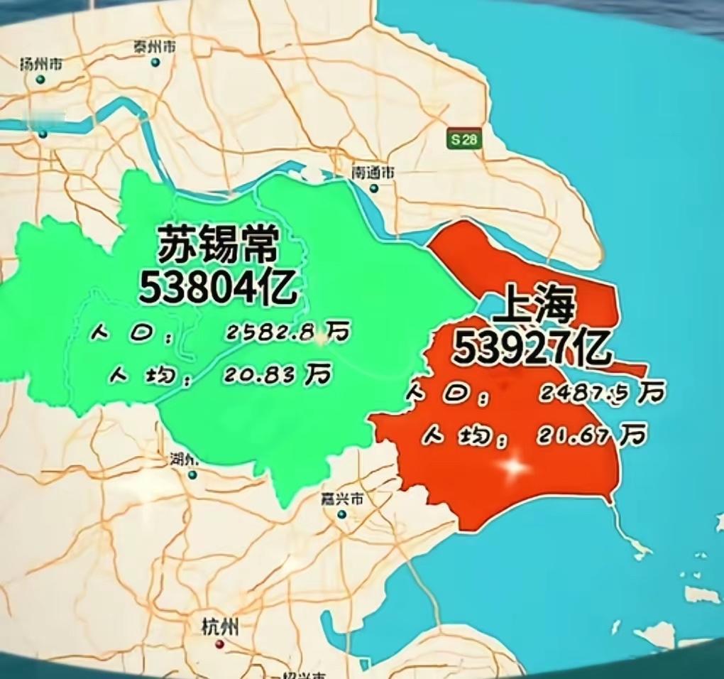 :看到一图,苏大强的“苏锡常”人口就和隔壁特大都市上海旗鼓相当了,GDP更是一点不逊色,真是厉害啊! 沪、苏、皖都是明清时期的江南省,也是明清时期的第一纳税大户,江苏除去“苏锡常”还有其它十大太保,包括省会南京那都是国内有名发达城市,曾经的江南省放到现在仍是第一大户啊![赞]