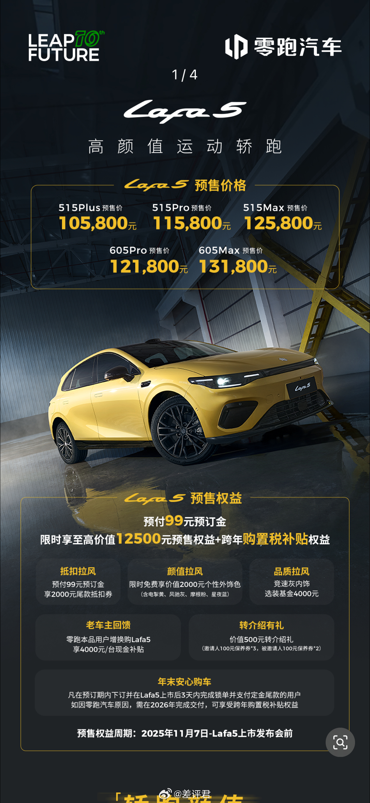 #差评说车# 领跑lafa5今天预售了,五个版本10.58-13.18万。给大伙过一遍这车的参数: