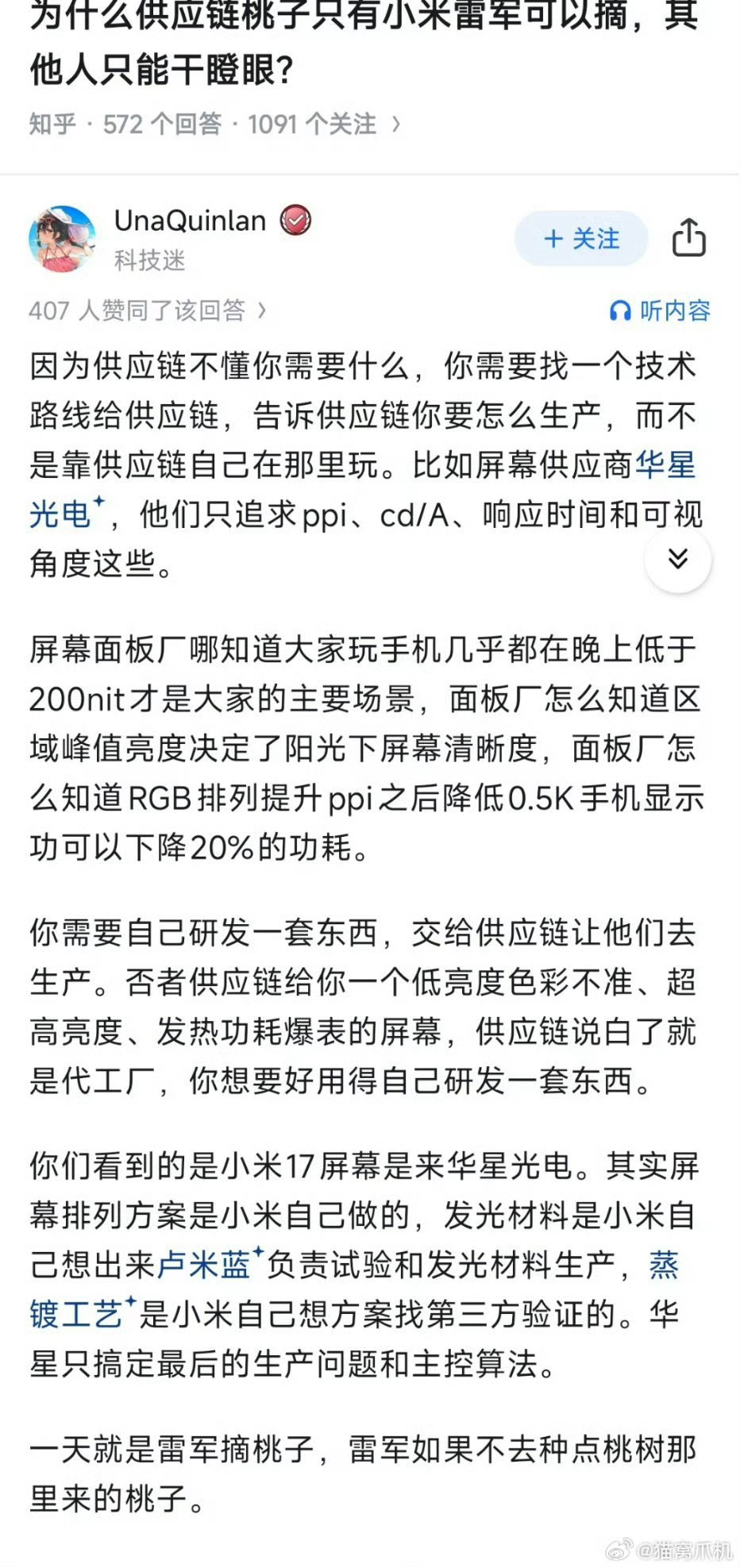 可乐 4 2025-11-10 17:31 一看文章就是这个小编在帮咪偷洗白,把双方的地位互换了。不用解释,华为一个禁止供货商向其它品牌提供技术的申明,然后小米就再也没有什么这个玻璃那个镜头的发布会,就说明了事实,它分明是找了华为的供货商,然后把华为的技术,改头换面,然后吹成自己的技术了!华为一封禁,它就发公告,要求共享技术,这说明了啥? 迷迷糊糊就走到了这个岁数 回复 11-10 21:35 起诉专利局,申请专利无效,小米法务部很敬业