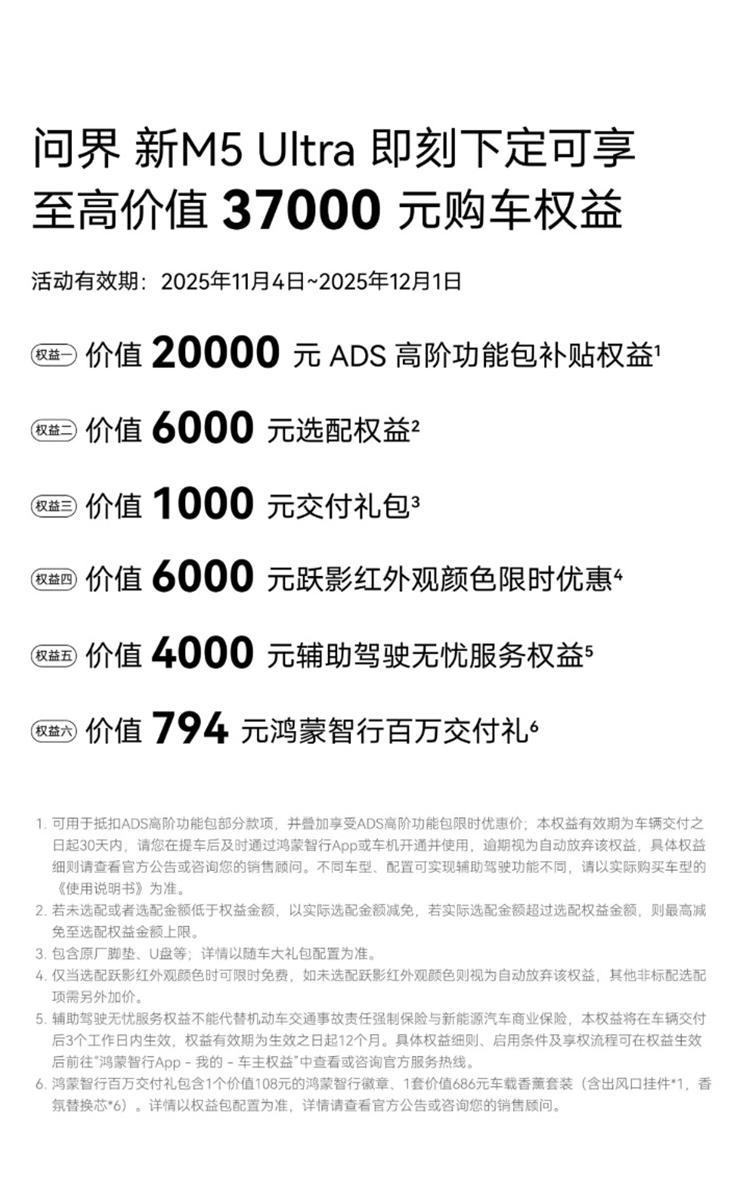 买车只是开始!问界新M5 Ultra与特斯拉Model Y在用车成本对比 作为车主,我选车时最看重的不仅是价格本身,更是这辆车长期用下来的实际成本。特斯拉Model Y电耗确实低,但保险费用偏高,而且像座椅通风、加热这类很基础的舒适配置都得另外加钱选装,实际购车成本并不像表面看起来那么简单。问界新M5 Ultra让我动心的,是它增程式的灵活性和实实在在的省钱。平时市区通勤基本纯电,算下来是真的省钱;偶尔跑长途也不会有里程焦虑。更关键的是,它给的37794元购车权益非常实在,20000元直接补贴高阶辅助驾驶,6000元选配权益满足个性化需要,连跃影红车漆也限时免费,又省6000元,这些都在无形中降低了拥有成本。再加上这车拿到了中汽中心抗路面冲击安全性能5A级认证,保值表现也不错,让我对它的长期品质更有信心。对比下来,特斯拉Model Y定价虽然透明,但选配累加反而拉高了门槛;而问界新M5 Ultra用一步到位的权益和更低的长期成本,是我最后选择它的最主要原因了。