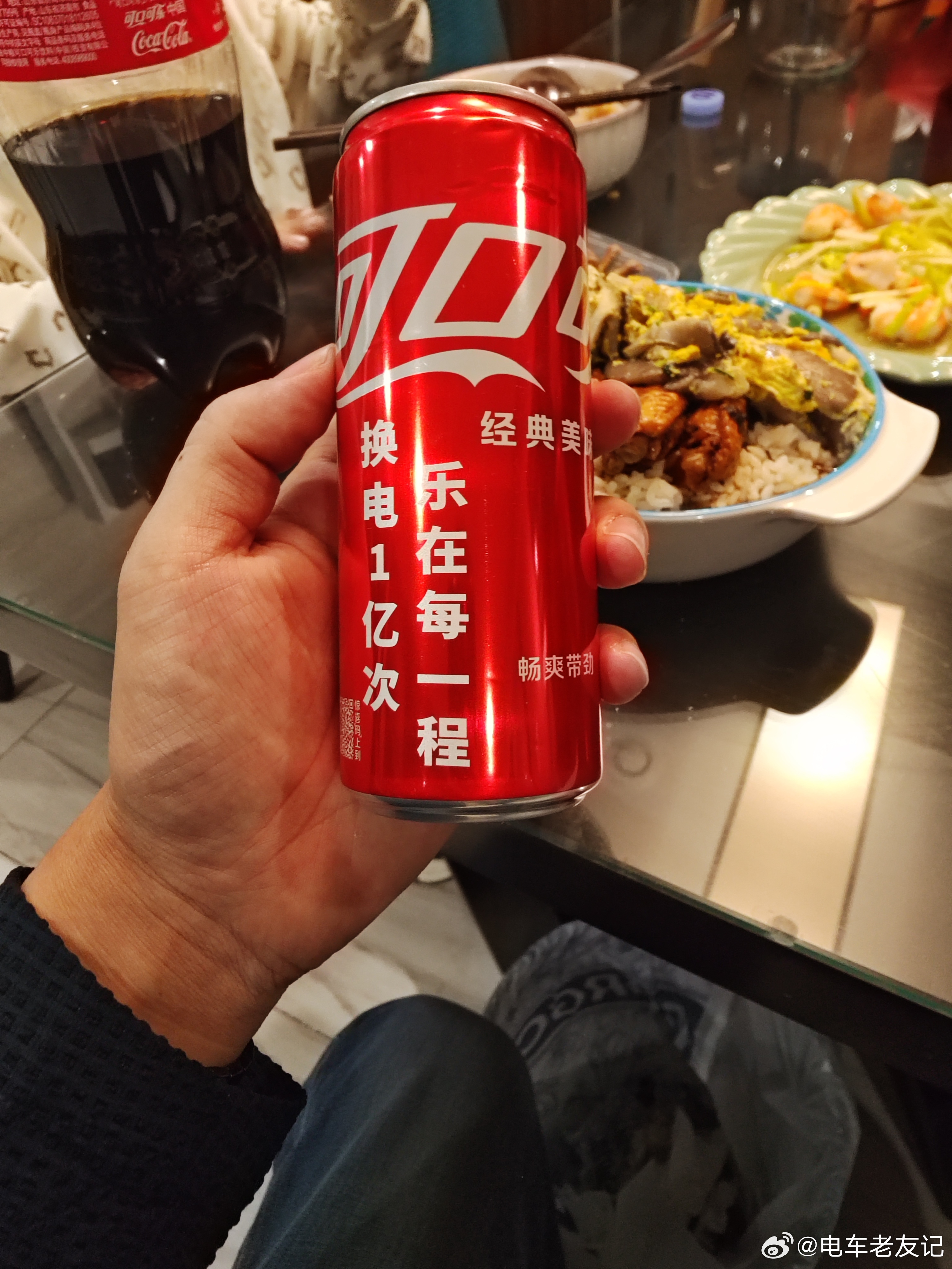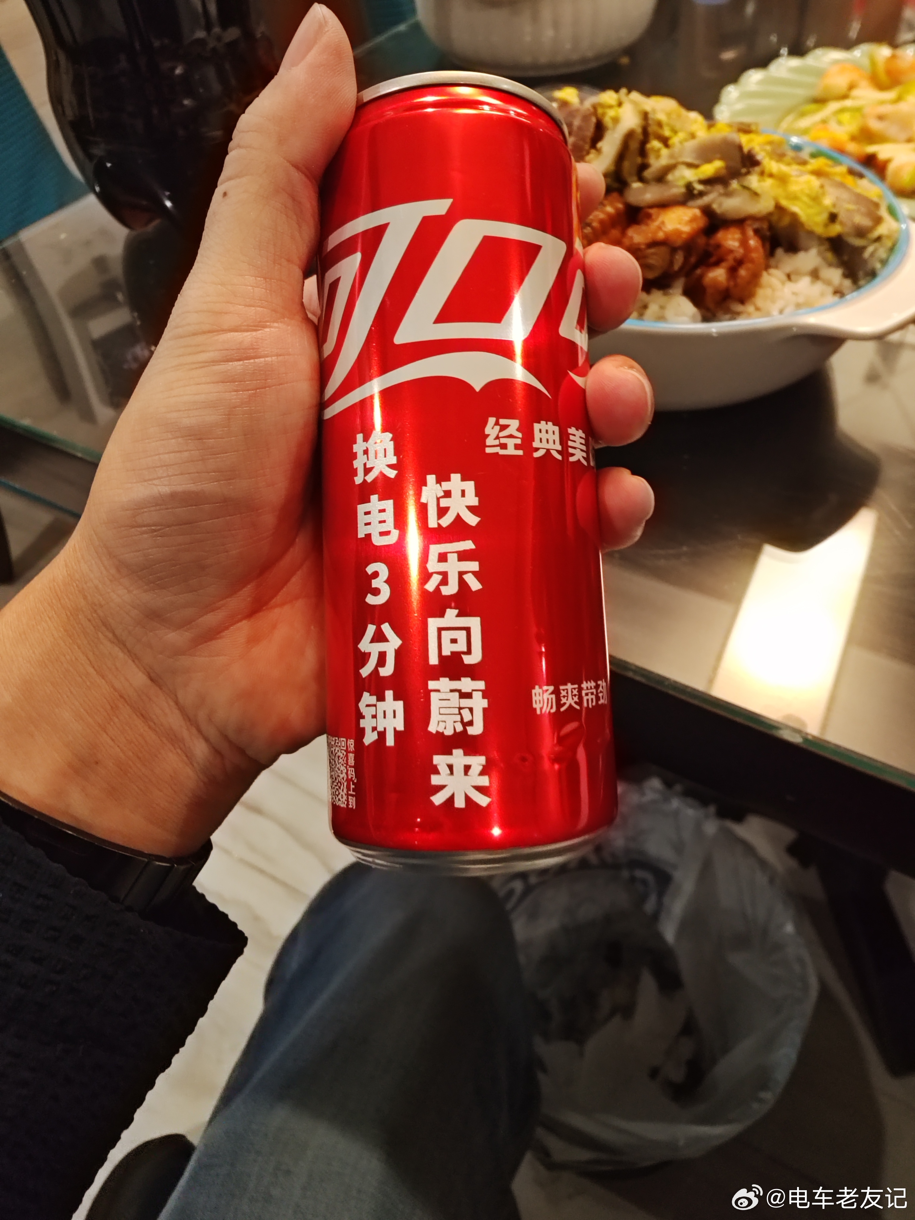今天的晚餐有一瓶可口可乐而且还是蔚来和可乐的联名款年底的一亿次换电会到来吗?
