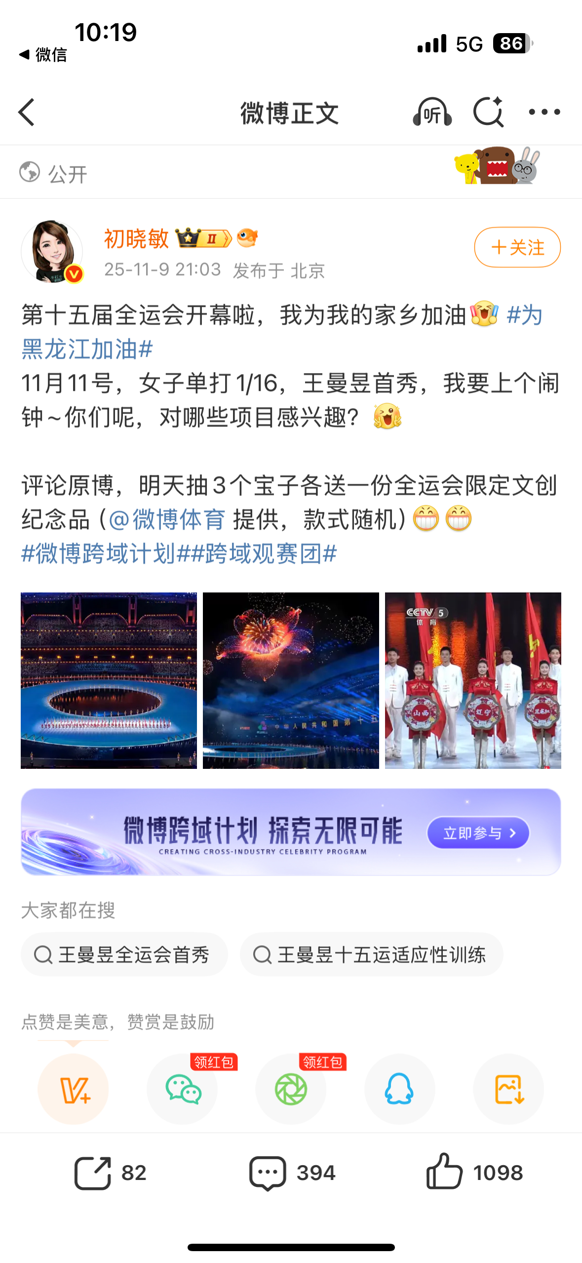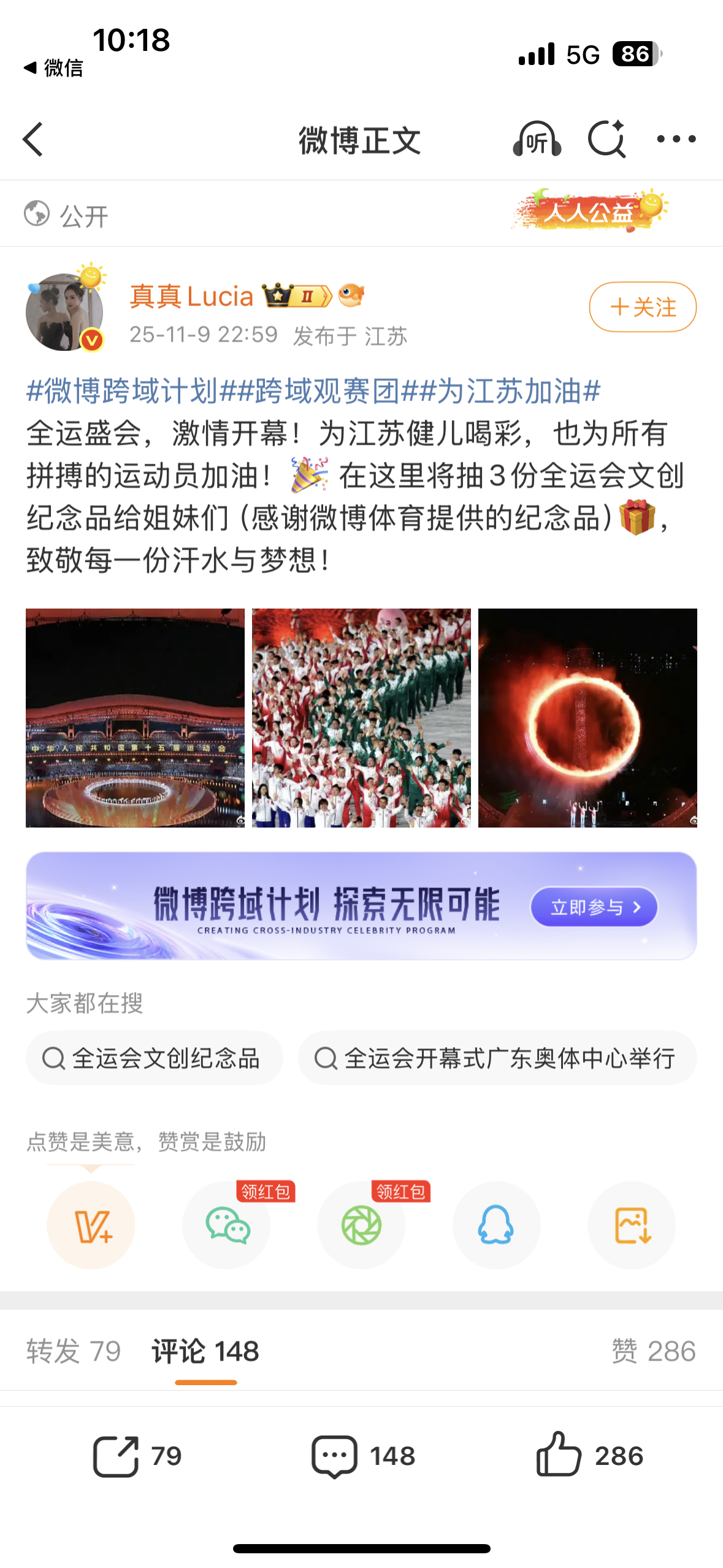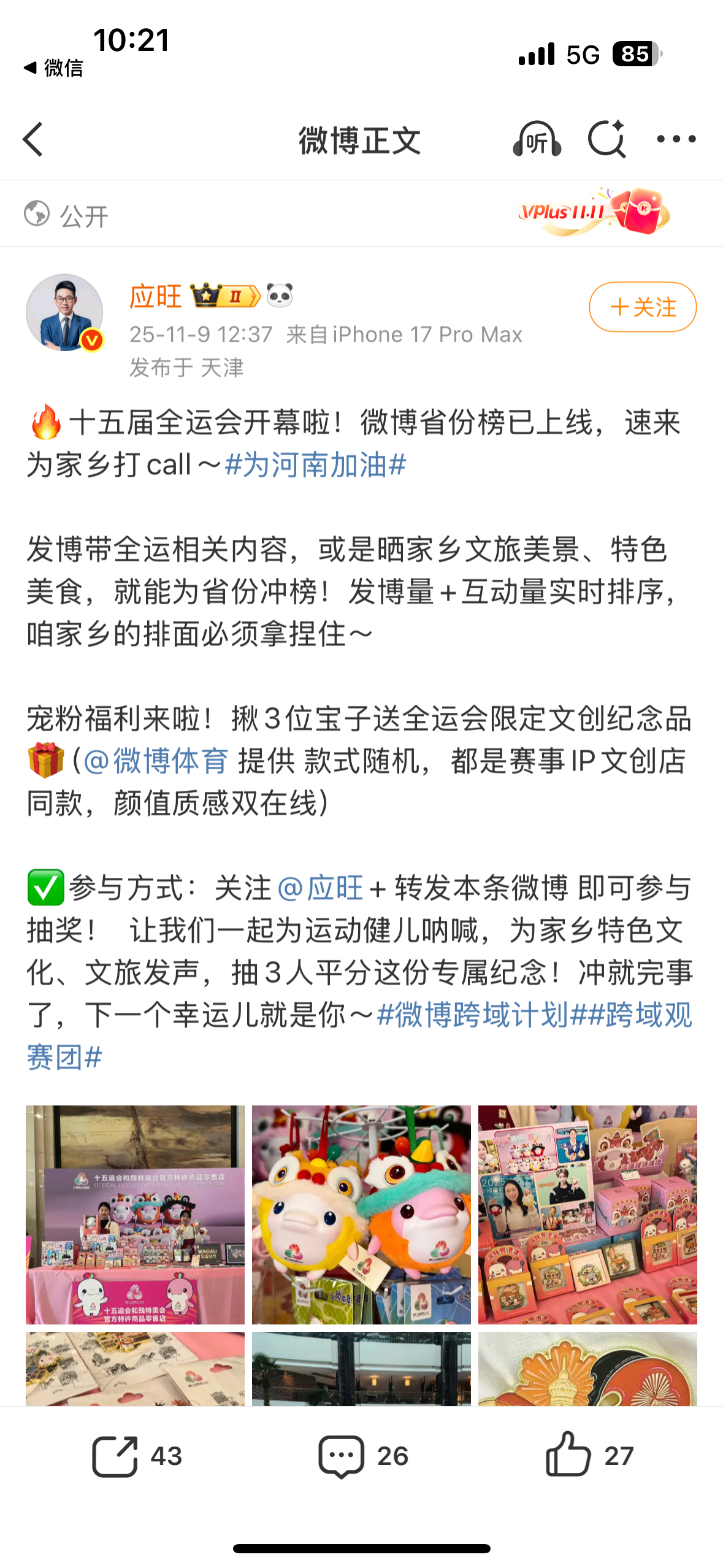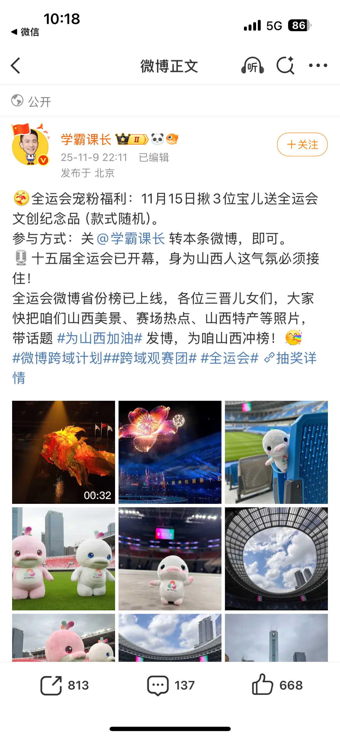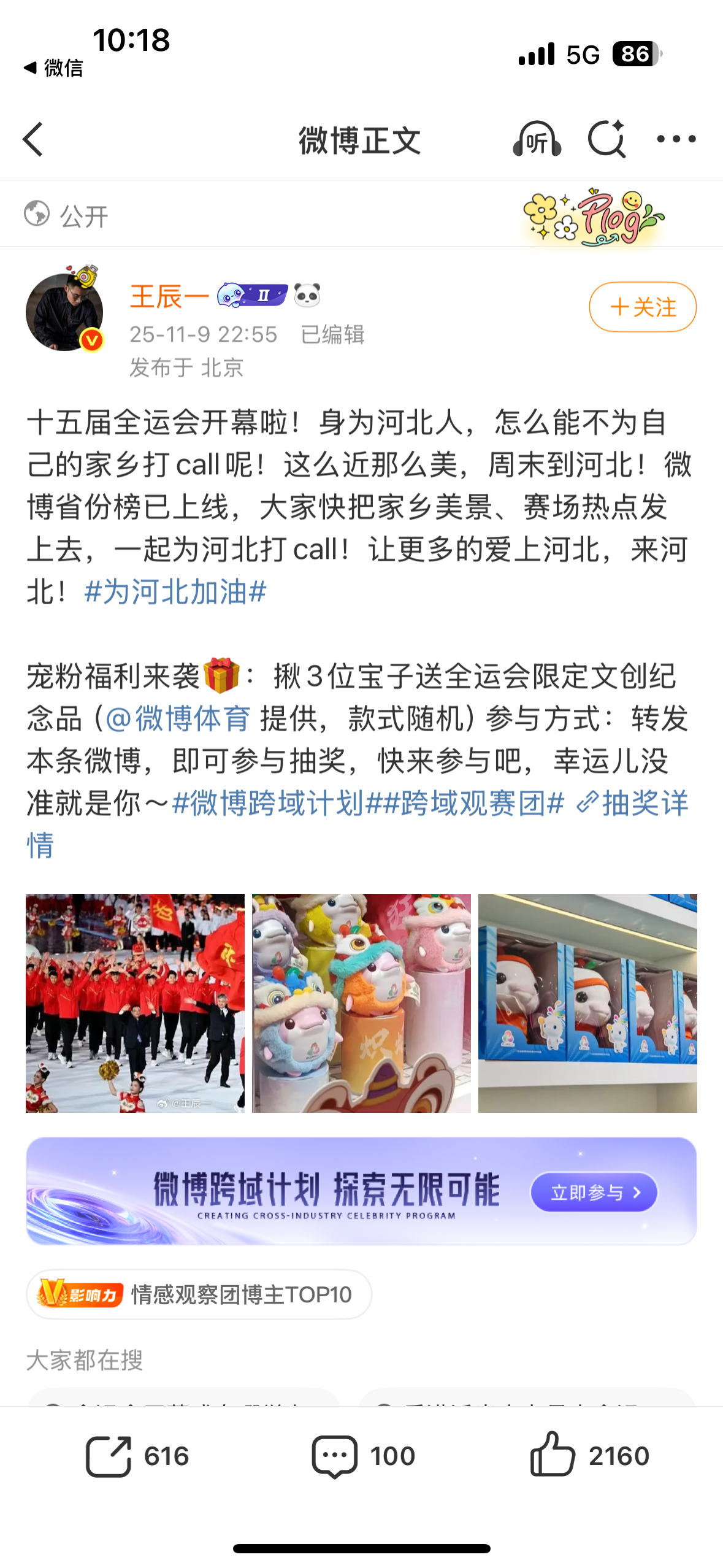 全运会正式开幕,开幕日全省份榜上广东队为广东加油 占据榜首,河北上海北京紧随其后。等博主送出全运吉祥物大湾鸡,号召大家一起为家乡加油![打call]