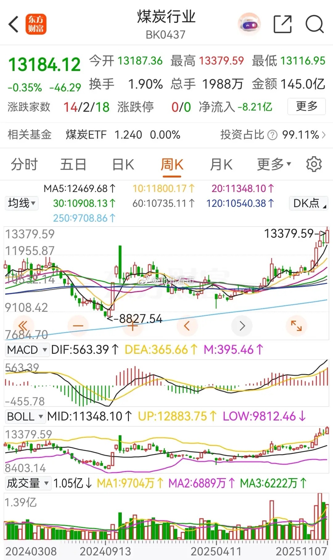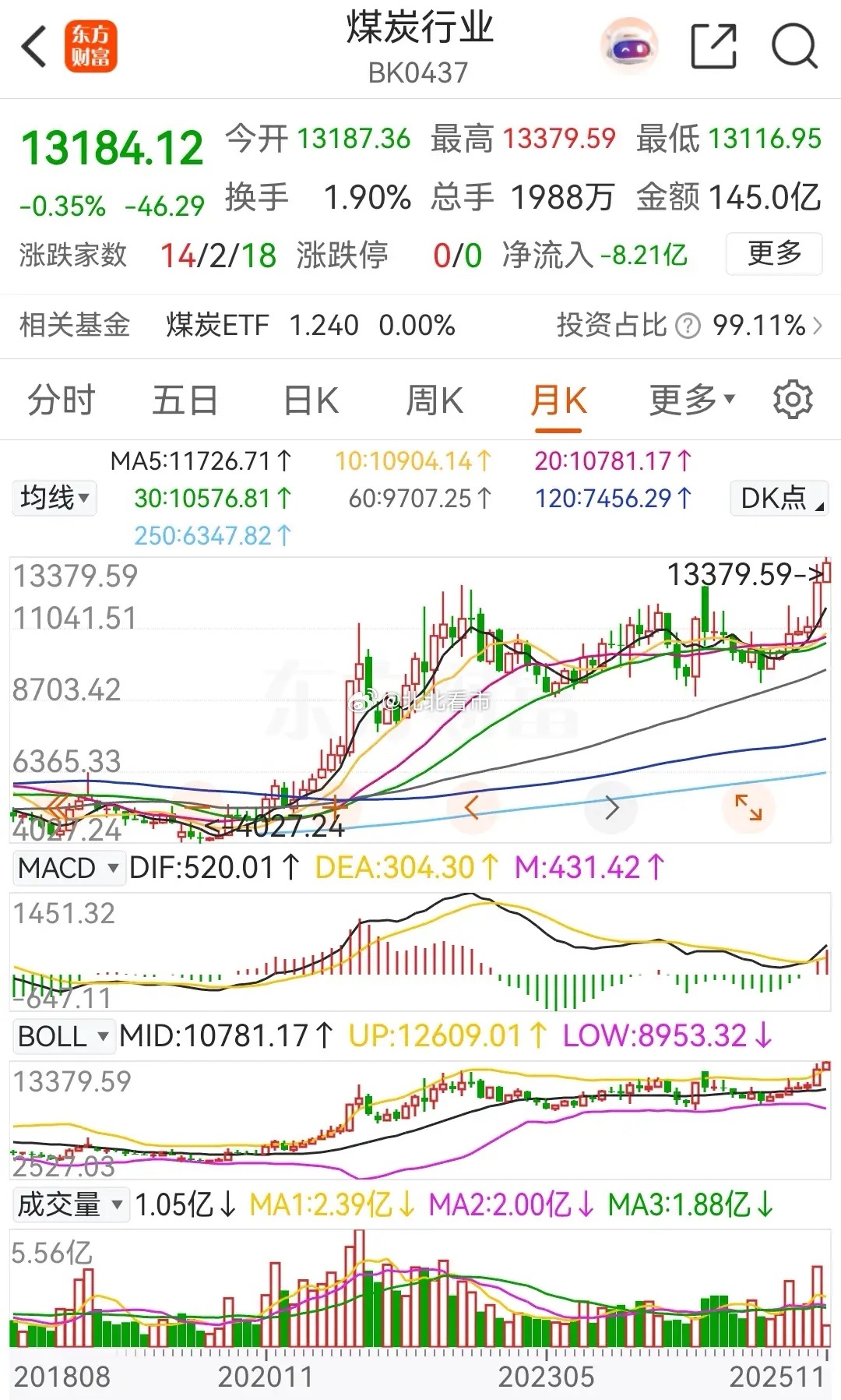 对于当前的煤炭行业,该板块目前的投资逻辑是逆袭源于“冷冬需求+供给受限+高股息防御”三重逻辑,短线情绪过热需要防止分化,当然了,中长期仍具配置价值。