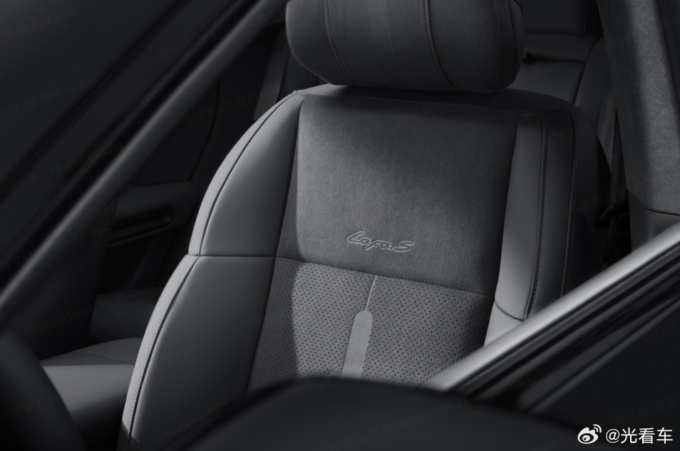 内饰配色提供速域紫、驰影灰、竞速灰三种选择,速域紫夜色霓虹与尾焰的颜色,极具时尚与运动感;驰影灰灵感源于赛道柏油的中性灰调,理性而不平庸;竞速灰质感运动、出众,采用5.54㎡仿麂皮超纤绒与Nappa全粒面真皮拼接,座椅上“延伸赛道”纹理与“Lafa5”专属字标烫印,在细节处彰显豪华运动质感。