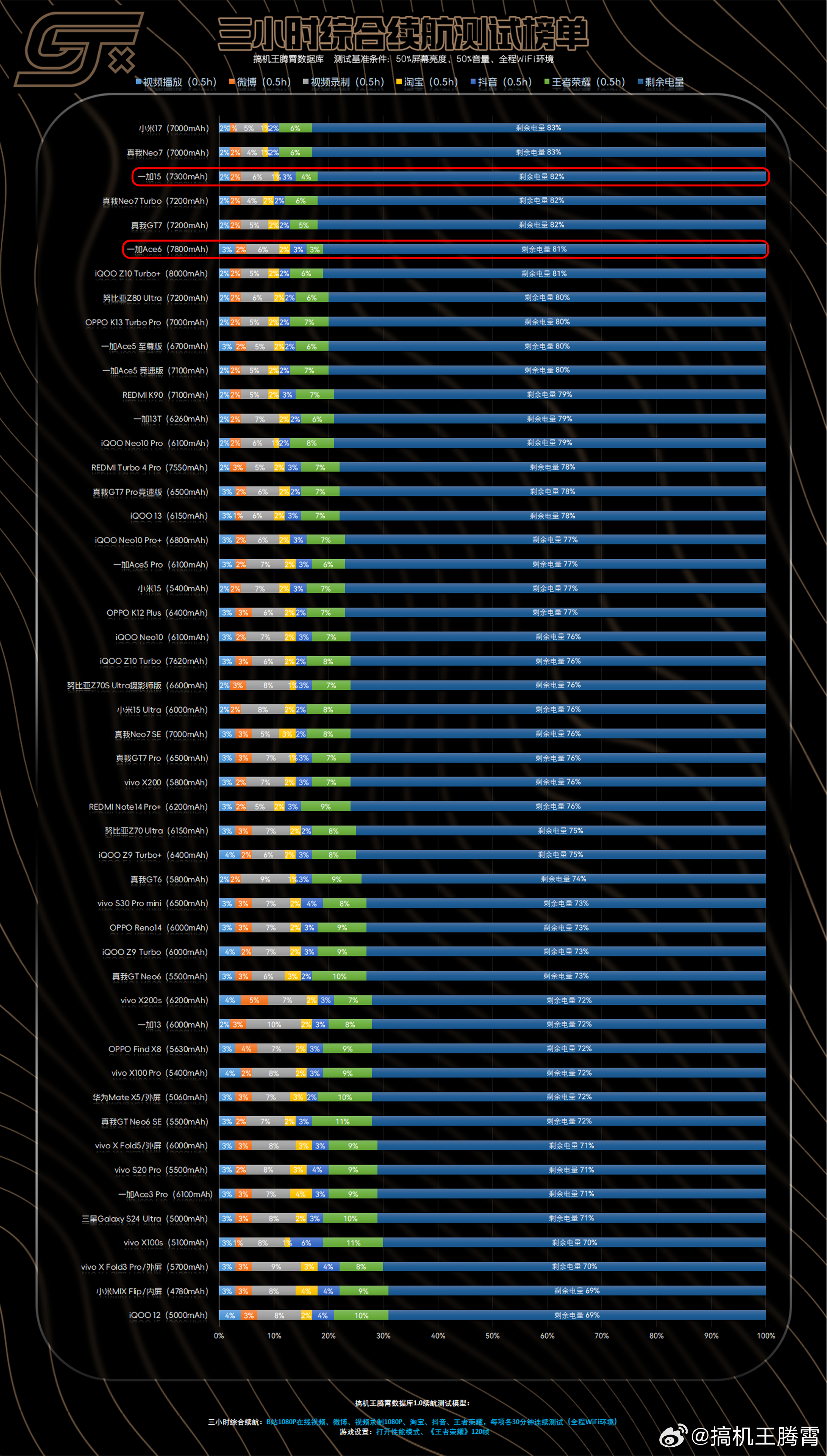 电池方面两台都7字打头,加加15给了7300mAh、加加Ace6给了7800mAh,三小时综合续航测下来分别剩82%和81%的电量,续航算是第一梯队水平,都很强。充电功率也都是120W,前半小时两台手机回血速度相当,都能充80%左右,加加15前台充满42分钟,加加Ace6前台充满46分钟,整体表现如何[并不简单]